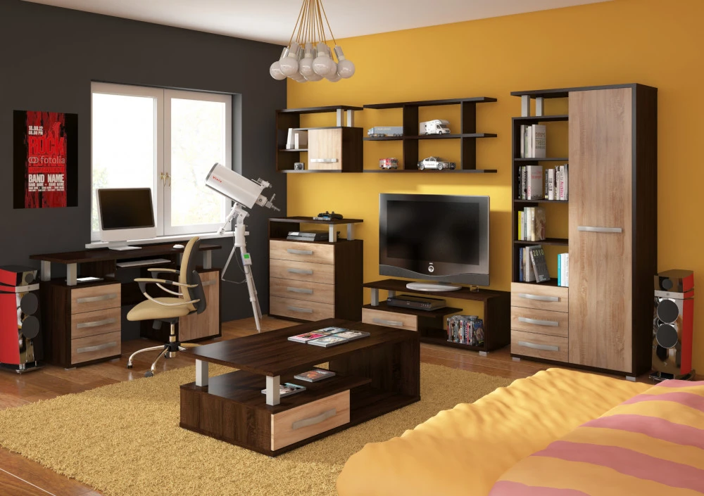 Kolekce Angel nabízí inspirativní výběr komponentů, které nesmí chybět v žádném moderním interiéru. Jednotlivé díly jsou variabilní, lze je navzájem kombinovat a vytvořit tak obývací sestavu podle vlastních představ. Produkty jsou z 16 mm a 25 mm lamina, které je odolné, stálobarevné a navíc se snadno udržuje. Pojezdy zásuvek jsou kovové.