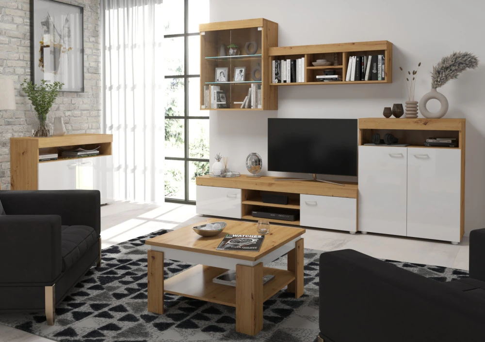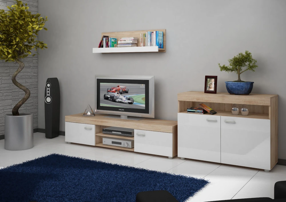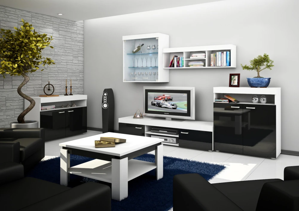 Obývací stěna Max je systémová obývací stěna, kterou si můžete sestavit dle vašich požadavků. Zaujme zejména svou variabilitou. Je vyrobena z kvalitních lamino materiálů 16 mm. Je vhodná do každého interiéru, kde požaduje zákazník moderní design. Nábytek je v demontu. Možnost dokoupení osvětlení LED, které naleznete v sekci další možné komponenty.