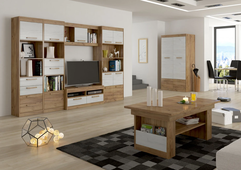 Obývací stěna Maximus 3 se hodí zejména do moderně zařízených interiérů. Díky LTD materiálu, který je při výrobě použit, vyniká celá kolekce špičkovou kvalitou. Stěnu si můžete vybrat z několika barevných variant. Zajímavý design barev dodává stěně ještě více na luxusu a nadčasovosti. Navíc v naší nabídce můžete najít další variaty obývacích stěn z kolekce Maximus, což je obrovskou výhodou při volbě Vašeho vysněného obývacího pokoje. Obývací stěna Maximus 3 nabízí - police 1D Maximus, regál W1D4S Maximus, regál W2D2S Maximus, regál W6D Maximus a TV stolek 2S Maximus. Můžete si k ní také dokoupit skříň 4D Maximus a konferenční stolek Maximus, který nesmí chybět v žádné společné místnosti.