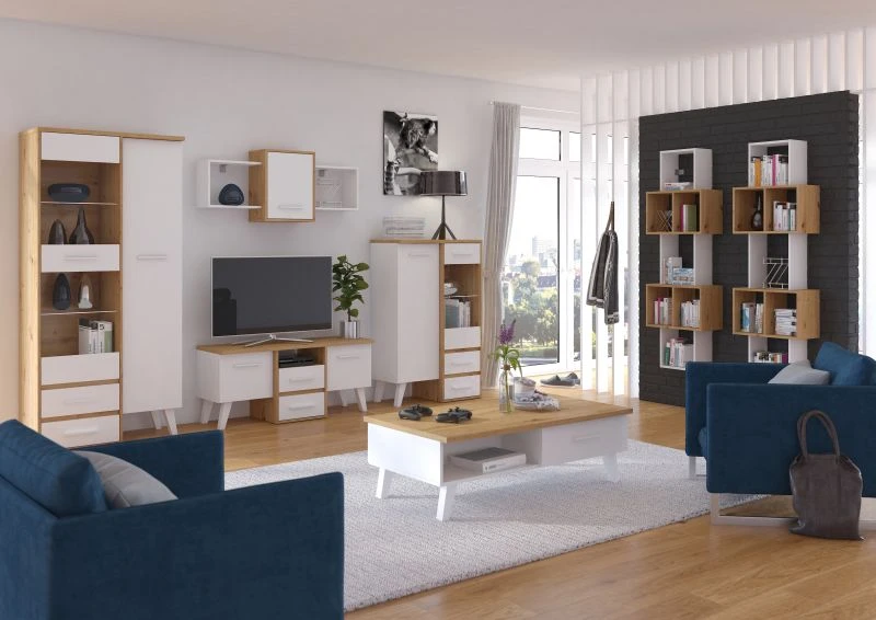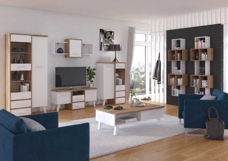Stěnu vám dodáme v demontu. Části sestavy si můžete objednat také samostatně, či je zkombinovat s jinými prvky kolekce a vytvořit si tak obývák podle svých představ.