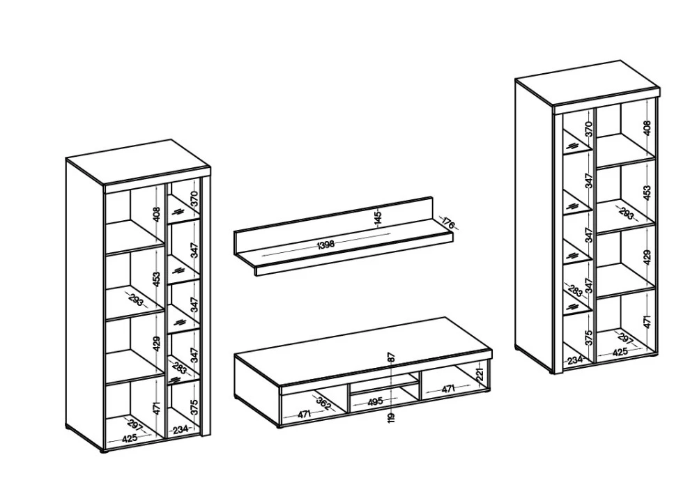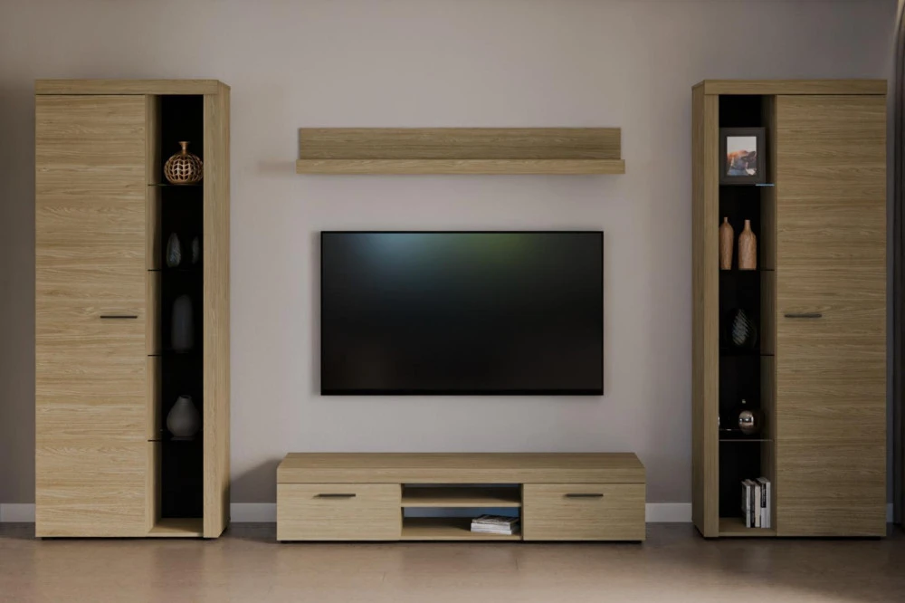 Obývací stěna Rizo patří mezi oblíbené modely moderního nábytku. Nabízí dostatek úložného prostoru a je vhodná i do menších pokojů. Stěna je vyrobena z lamina, které je odolné a snadné na údržbu. Ke stěně nabízíme i několik typů komod ve stejném provedení. Všechny prvky této sestavy jsou dodávány v demontu. Součástí je montážní plánek včetně všech potřebných spojovacích materiálů. Cena je uvedena za bytovou stěnu vyobrazenou na úvodní fotografii, bez komod, doplňků a dekorací. LED osvětlení není v ceně sestavy.