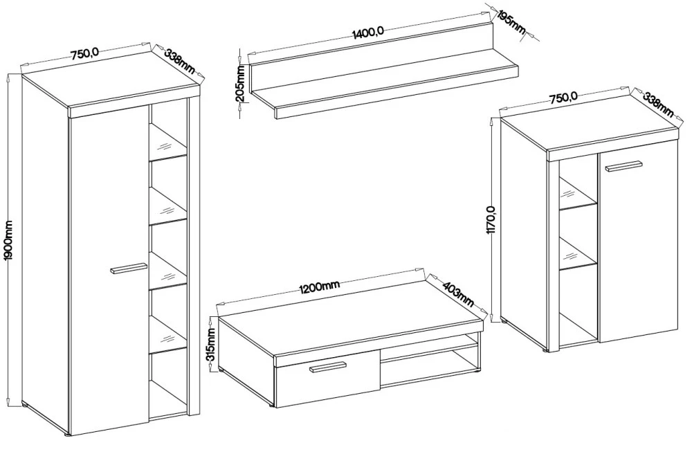Obývací stěna Rizo patří mezi oblíbené modely moderního nábytku. Nabízí dostatek úložného prostoru a je vhodná i do menších pokojů. Stěna je vyrobena z lamina, které je odolné a snadné na údržbu. Ke stěně nabízíme i několik typů komod ve stejném provedení. Všechny prvky této sestavy jsou dodávány v demontu. Součástí je montážní plánek včetně všech potřebných spojovacích materiálů. Cena je uvedena za bytovou stěnu vyobrazenou na úvodní fotografii, bez komod, doplňků a dekorací. LED osvětlení není v ceně sestavy.