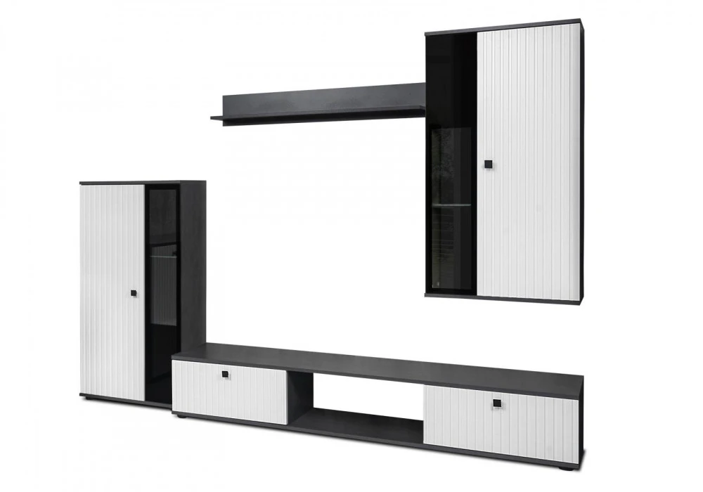 Obývací stěna Silos patří mezi oblíbené modely moderního nábytku. Nabízí dostatek úložného prostoru a je vhodná i do menších pokojů. Stěna je vyrobena z lamina, které je odolné a snadné na údržbu. Ke stěně nabízíme i komodu ve stejném provedení. Všechny prvky této sestavy jsou dodávány v demontu. Součástí je montážní plánek včetně všech potřebných spojovacích materiálů. Cena je uvedena za bytovou stěnu vyobrazenou na úvodní fotografii, bez komody, doplňků a dekorací. LED osvětlení není v ceně sestavy (lze dokoupit zvlášť). Rozměry: š.240 cm / v.180 cm / hl.40 cm