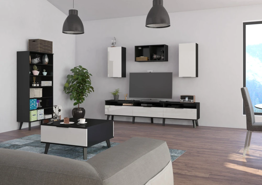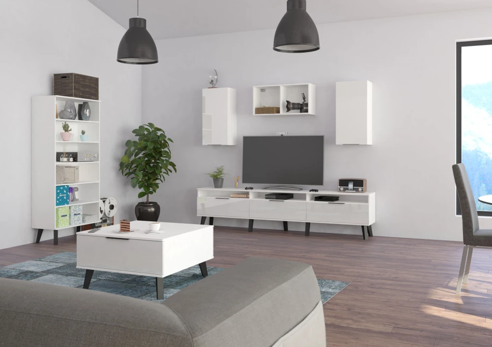 Sestava se skládá z TV stolku Sven 12, závěsné skříňky Sven 14 a 2x závěsné skříňky Sven 15.