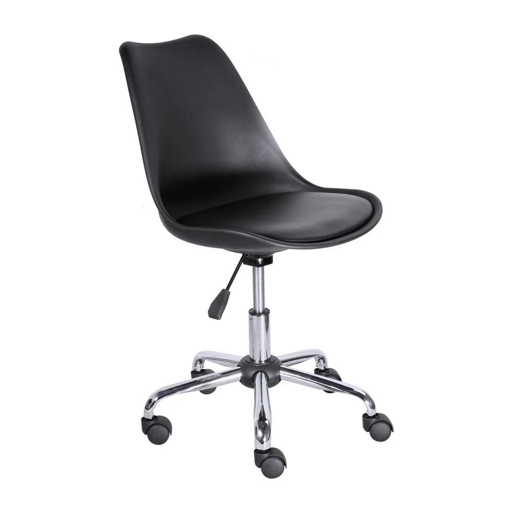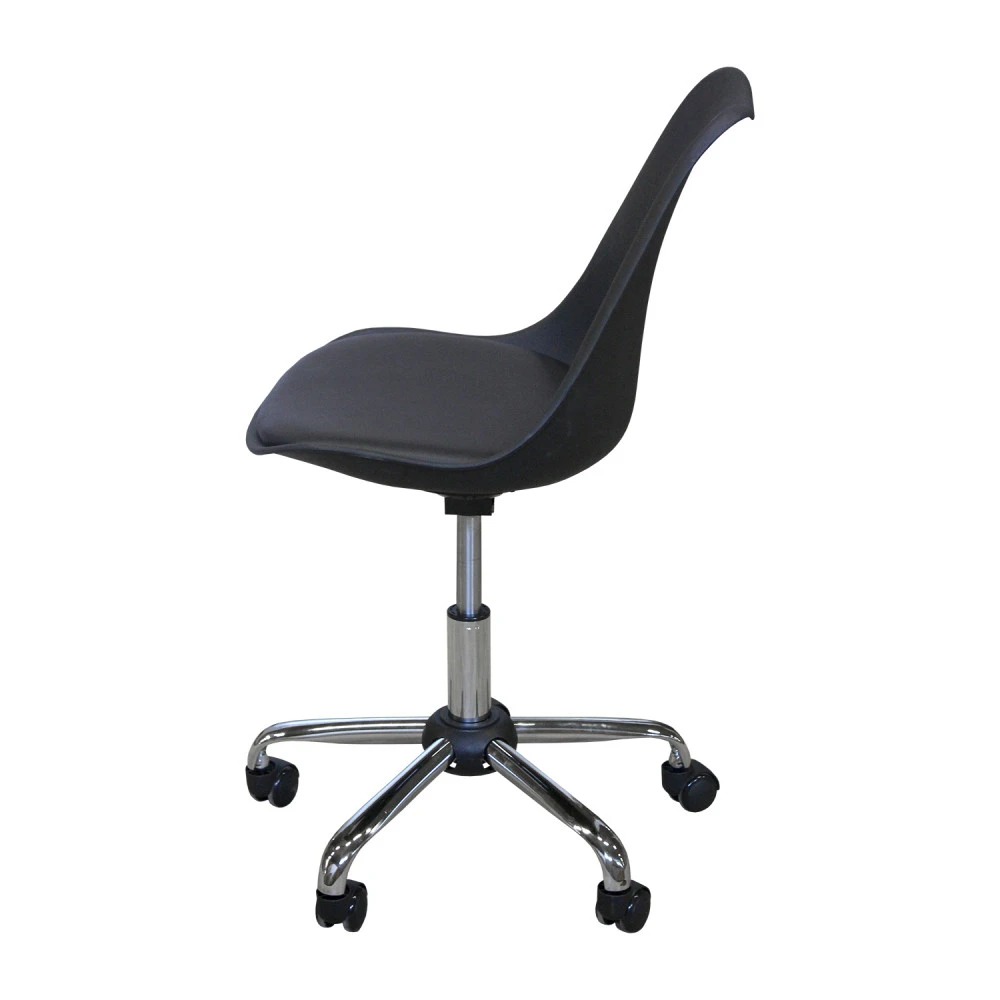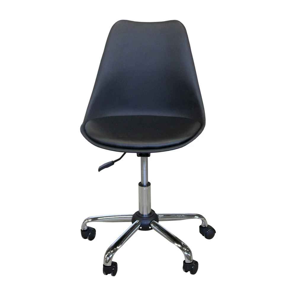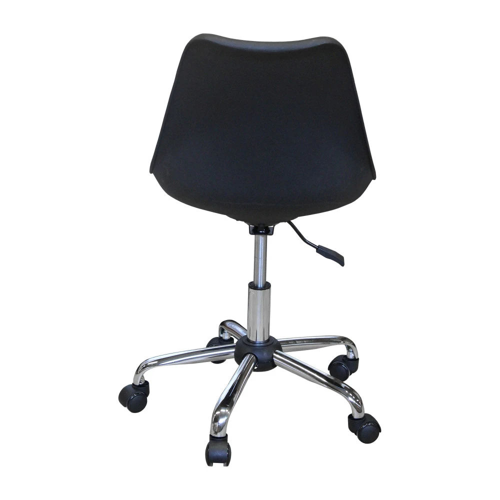 materiál sedačky plast, potah sedáku kůže – imitace, barevné provedení černá výškově nastavitelné, výška sedu 46-55 cm kovový pochromovaný kříž