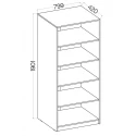 Vysoký široký regál Matylda 110 je vyroben z lamina v provedení dub artisan. Regál je velmi praktický a pojme vše potřebné. Je dodáván v demontu. Součástí balení je montážní návod včetně všech spojovacích prvků.