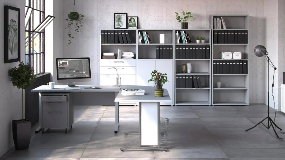 Nadčasová řada Office nabízí nekonečně mnoho úložných řešení pro vaši kancelář, domácí pracovnu nebo studentský pokoj. Knihovny a kancelářské skřínky je možné doplnit zásuvkami (s kovovými pojezdy) a dvířky v různých barvách, což vám umožňuje vytvořit si kancelář přesně podle vašich potřeb a přání. Sortiment této řady vyrobený z odolného a snadno udržovatelného lamima obsahuje také širokou škálu kancelářských stolů, pojízdných zásuvkových kontejnerů a variabilních prvků.