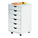 materiál masiv borovice, barevné provedení bílý lak 6 zásuvek, pojízdný na kolečkách vnitřní rozměr zásuvky (š/h/v) 26,7 × 32,5 × 6 cm