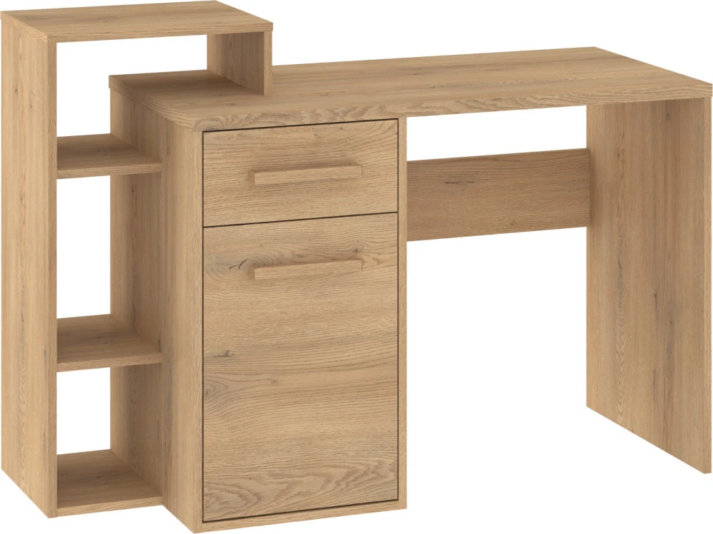 PC stůl Rio 03 se skvěle hodí do moderně zařízených interiérů - zejména obývacích pokojů, ložnic, studentských pokojů a pracoven. LTD materiál, ze kterého se stůl skládá, zajišťuje vysokou odolnost a špičkovou kvalitu. Na levé straně stolu se nachází skříňka, zásuvka a tři police, které můžete využít na uskladnění různých nezbytností. Stůl si můžete vybrat z několika barevných variant. Zajímavý design barev dodává stolu na luxusu a nadčasovosti.