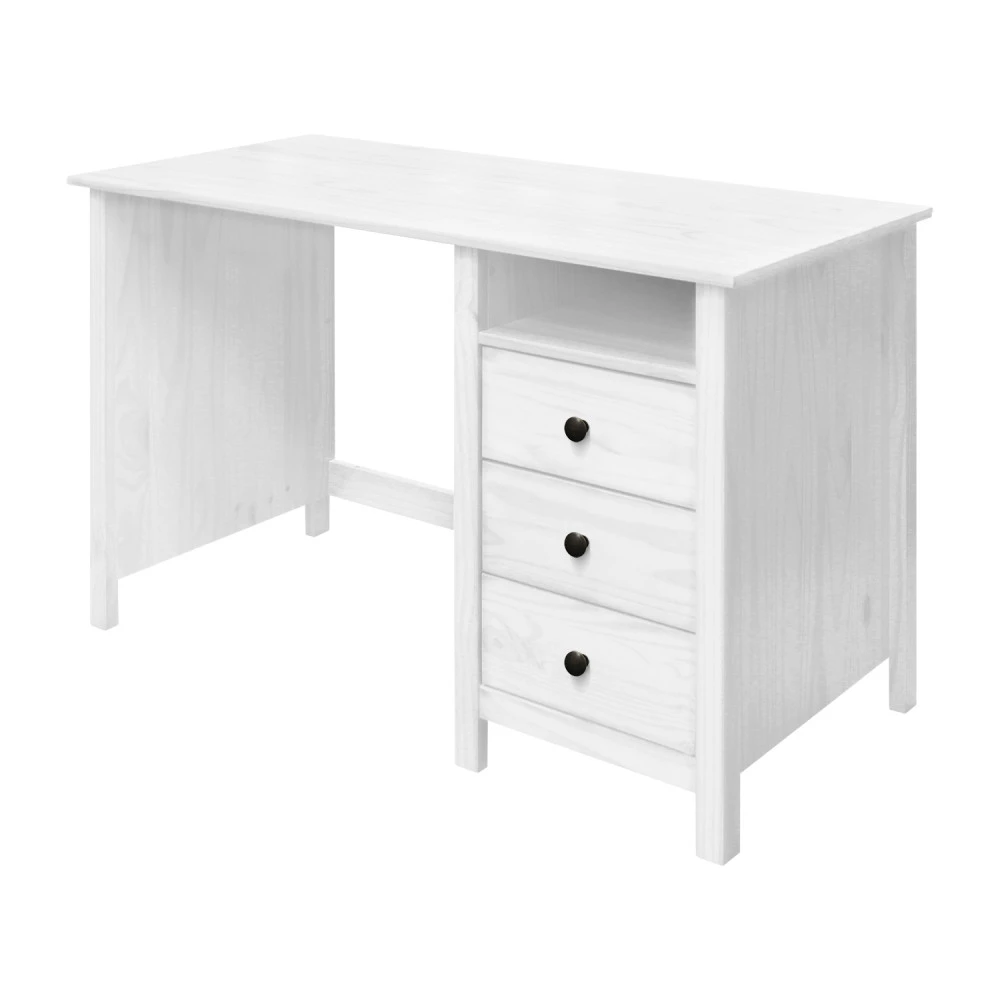 materiál masiv borovice, barevné provedení bílý lak kovové úchytky 3 zásuvky s kovovými pojezdy, 1 police