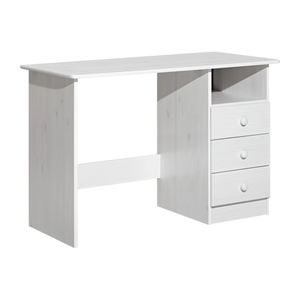 materiál masiv borovice, barevné provedení bílý lak 3 zásuvky s kovovými pojezdy (montáž možná pouze na pravou stranu) rozměr zásuvky (š/h/v) 27,9 × 30,7 × 10,5 cm bez výsuvu pro klávesnici