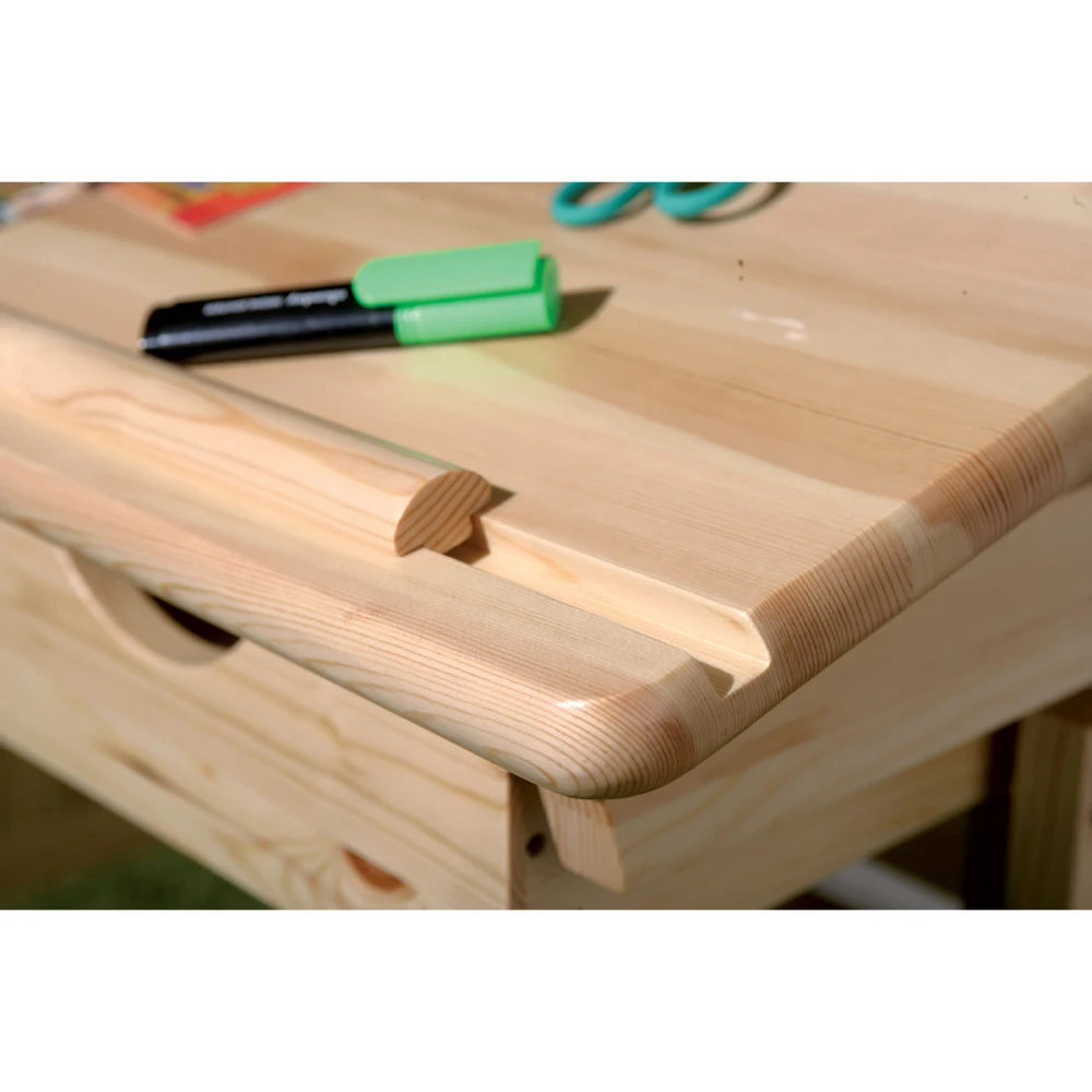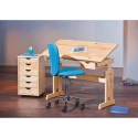 materiál masiv, lakované provedení pracovní deska výškově nastavitelná 63-96 cm, naklopitelná pod pracovní deskou zásuvka a odkládací police