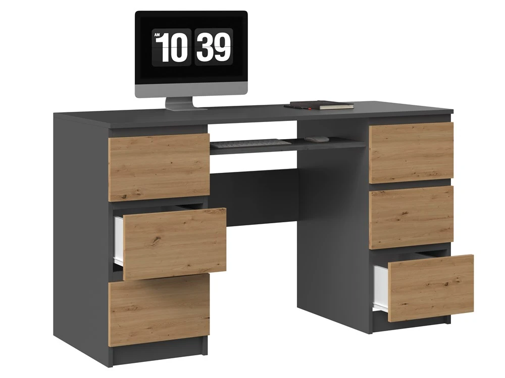 Funkční psací stůl Kima v jednoduchém a moderním designu poskytuje dostatečnou pracovní plochu a díky prostorným zásuvkám také spoustu úložného prostoru. Bezúchytková čela zásuvek zajistí pohodlné používání. Stůl je vyrobený ze snadno udržovatelného lamina, hrany jsou zakončené vysoce odolným ABS materiálem.