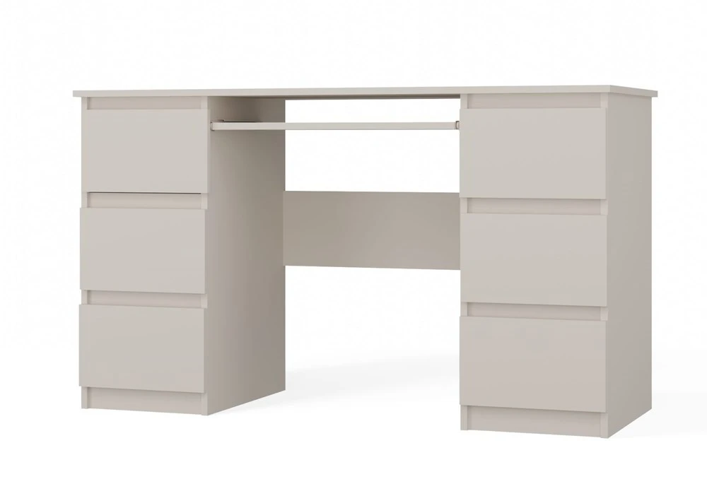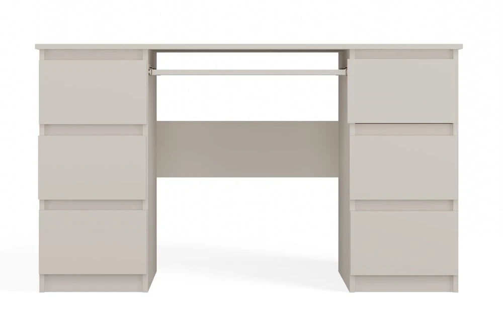 Funkční psací stůl Kima v jednoduchém a moderním designu poskytuje dostatečnou pracovní plochu a díky prostorným zásuvkám také spoustu úložného prostoru. Bezúchytková čela zásuvek zajistí pohodlné používání. Stůl je vyrobený ze snadno udržovatelného lamina, hrany jsou zakončené vysoce odolným ABS materiálem.