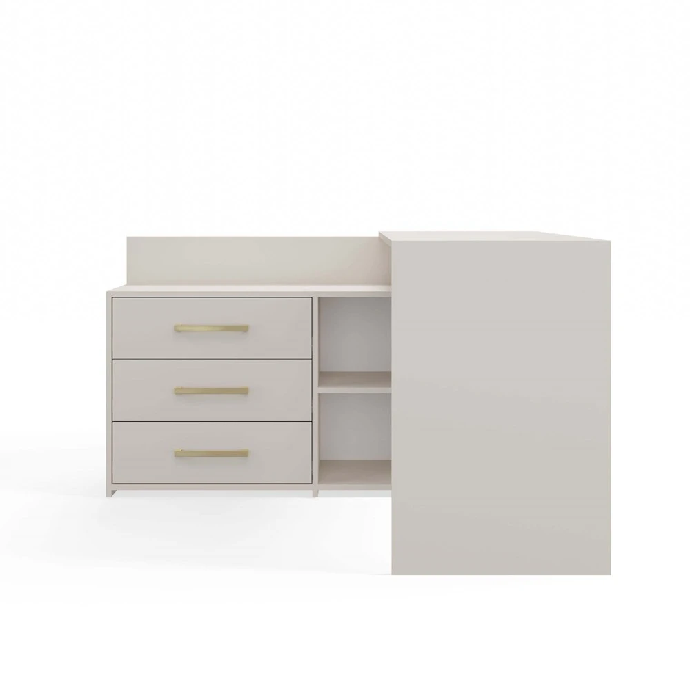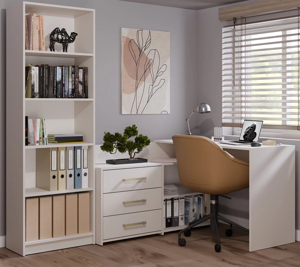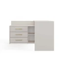 Funkční psací stůl Dado v jednoduchém a moderním designu poskytuje pohodlnou pracovní plochu a díky vestavěné komodě také spoustu úložného prostoru. Je vyrobený ze snadno udržovatelného lamina, hrany jsou zakončené vysoce odolným ABS materiálem.