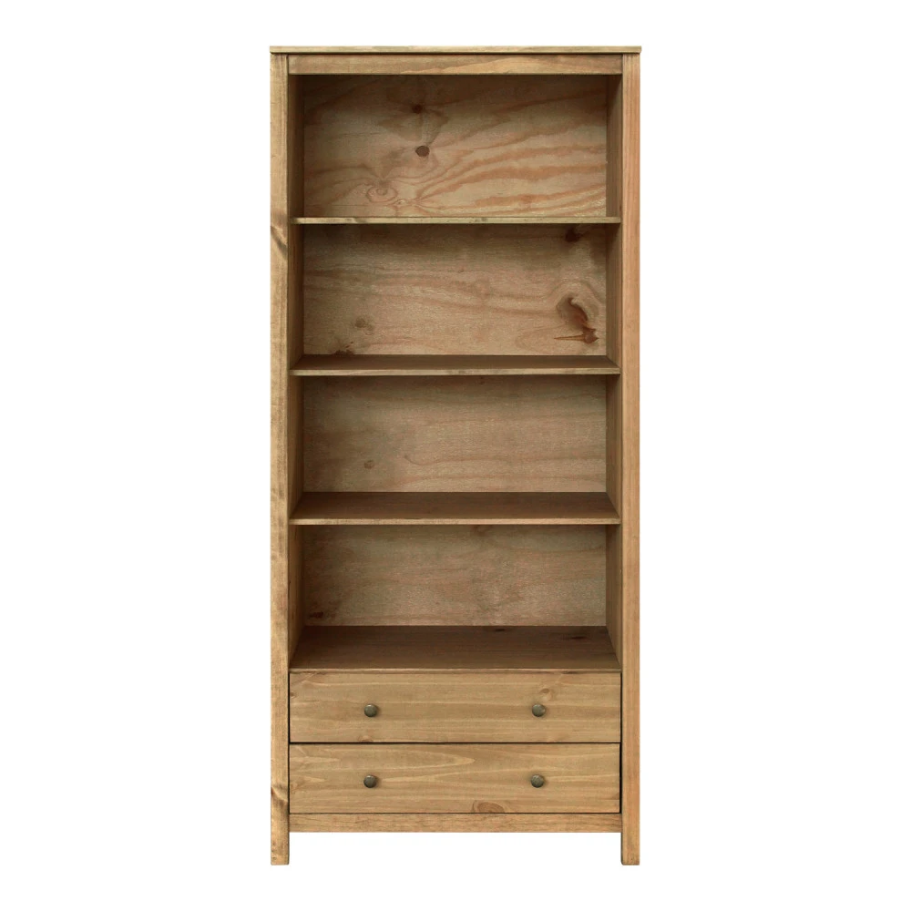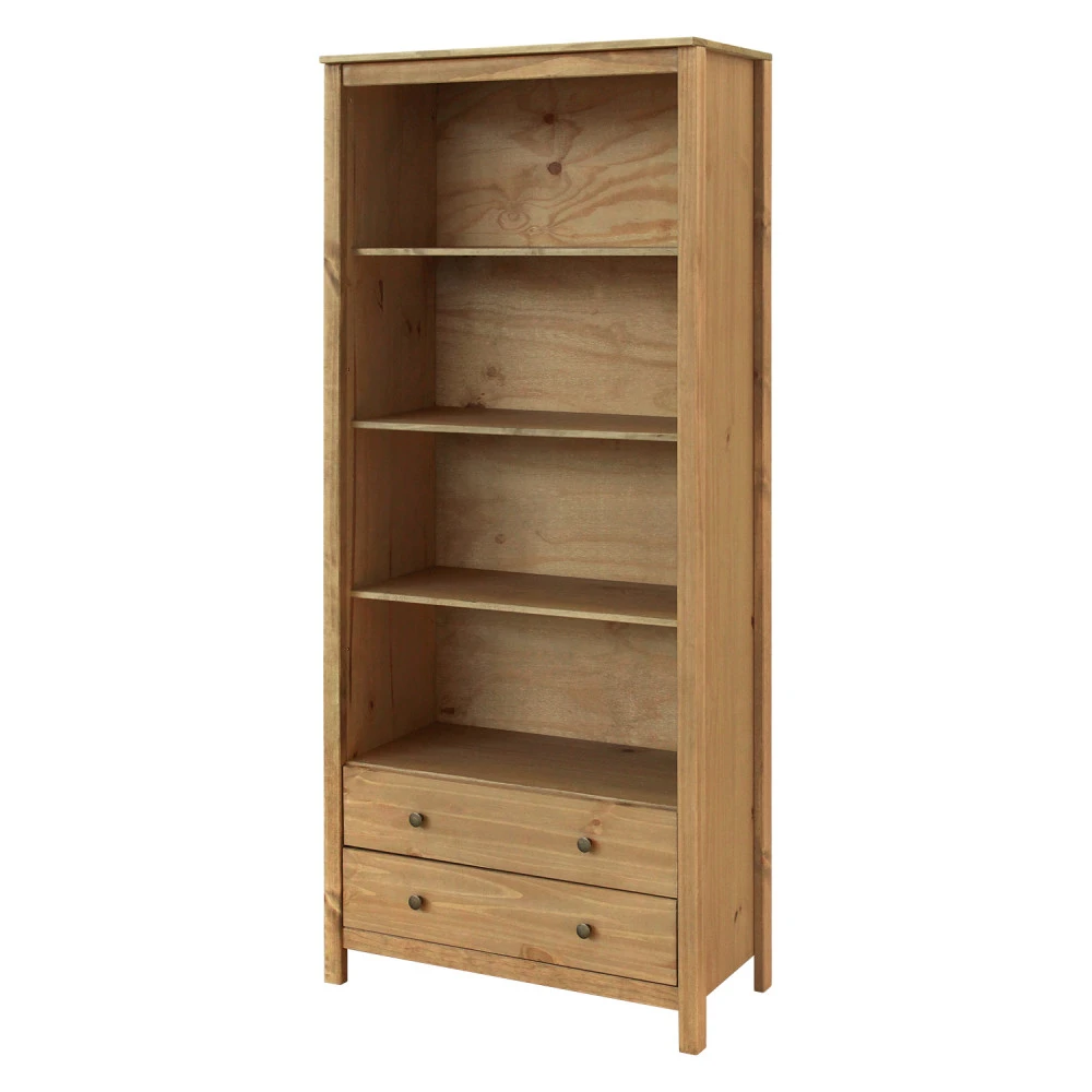materiál masiv borovice voskovaná v medovém odstínu kovové úchytky v barevném provedení mosaz tři police, dvě zásuvky s kovovými pojezdy