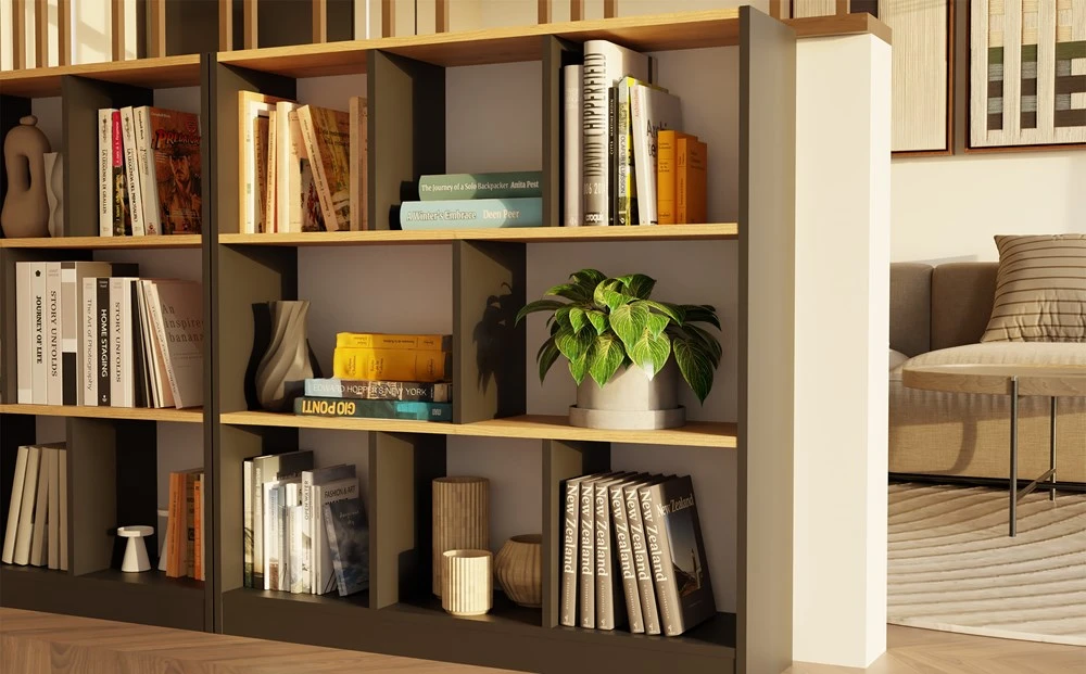 Modulární knihovna Finley je dokonalá kombinace funkčnosti a estetiky, která vnese do vašeho domova řád i skandinávskou lehkost. Díky kompaktním rozměrům perfektně zapadne i do menších prostor, otevřený design dodá místnosti vzdušnost. Nábytek je vyrobený z pevné laminované desky, hrany jsou povrchově upraveny ABS plastem - vyznačuje se vysokou mechanickou a chemickou odolností.