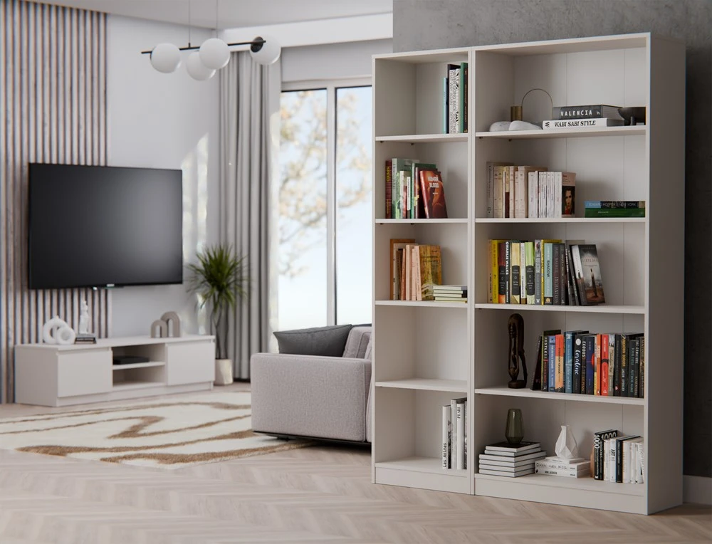 Nadčasové knihovny v trendy barvách série Malvína najdou díky své všestrannosti uplatnění jak v kanceláři, tak i v každém obývacím prostoru vašeho bytu. Knihovna s praktickými policemi je perfektním řešením pro ukládání knih, hraček, dekorací i firemních materiálů. Nábytek je vyrobený z pevné oboustranně laminované desky, hrany jsou povrchově upraveny ABS plastem - vyznačují se vysokou mechanickou a chemickou odolností.