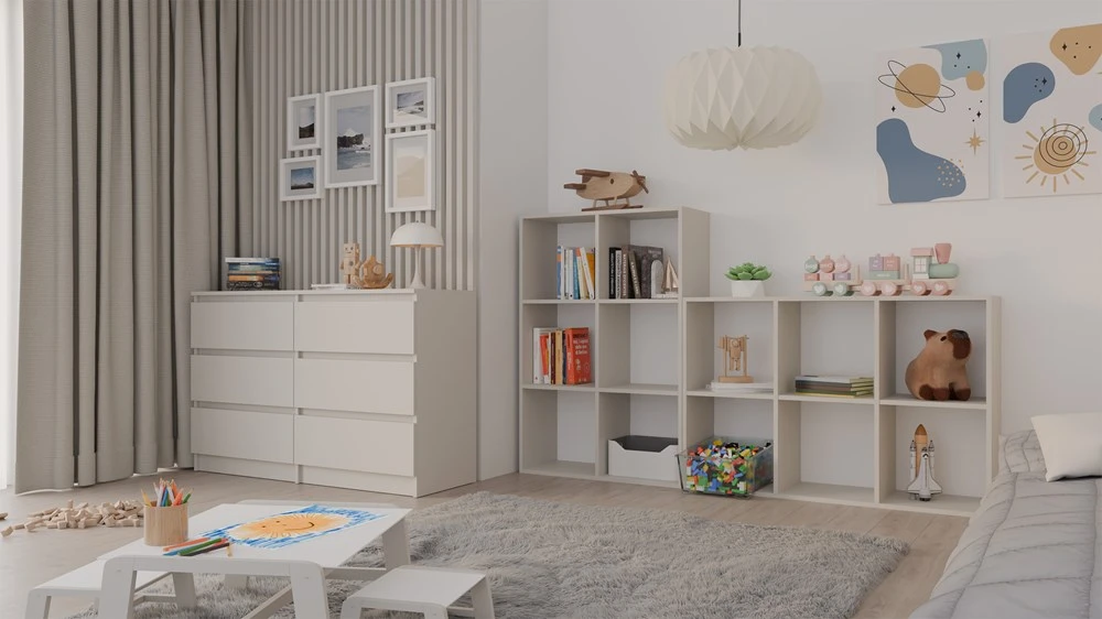 Nadčasový regál Manja se skvěle hodí do každé místnosti a je řešením pro ty, kteří oceňují minimalismus a pořádek. Jeho jednoduchý geometrický tvar umožňuje ukládat předměty uspořádaným a esteticky příjemným způsobem. Nábytek je vyrobený z laminované desky, hrany jsou povrchově upraveny ABS plastem - vyznačuje se vysokou mechanickou a chemickou odolností.