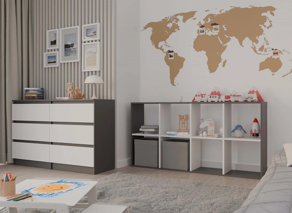 Nadčasový regál Manja se skvěle hodí do každé místnosti a je řešením pro ty, kteří oceňují minimalismus a pořádek. Jeho jednoduchý geometrický tvar umožňuje ukládat předměty uspořádaným a esteticky příjemným způsobem. Nábytek je vyrobený z laminované desky, hrany jsou povrchově upraveny ABS plastem - vyznačuje se vysokou mechanickou a chemickou odolností.