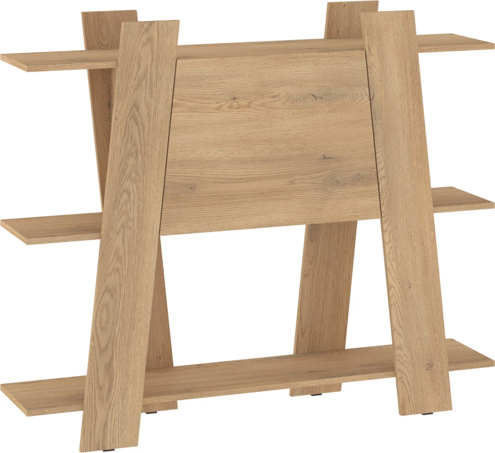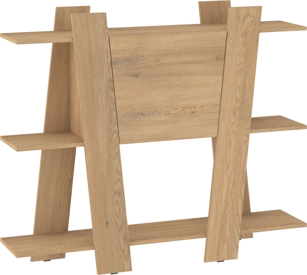 Regál Via vás zaujme svým neobvyklým avšak moderním designem a přírodním provedením. Je vyroben z kvalitních lamino desek o síle 16 mm a 25 mm. Desky mají ABS hranění, které zvyšuje odolnost pro odštípnutí hran. Součástí zásuvek a dvířek je zabudovaný systém tichého dovírání. Nabízíme vám několik barevných variant.V horní části regálu jsou 1 dvířka se svislým otevíráním. Do jednotlivých nik si můžete vystavit své oblíbené knihy, dekorace nebo rámečky s fotografiemi. Doporučujeme si vybrat z dalších komodit systému Via, ze kterých si vytvoříte svůj vysněný obývací pokoj či pracovnu.Nábytek dodáváme v demontu.