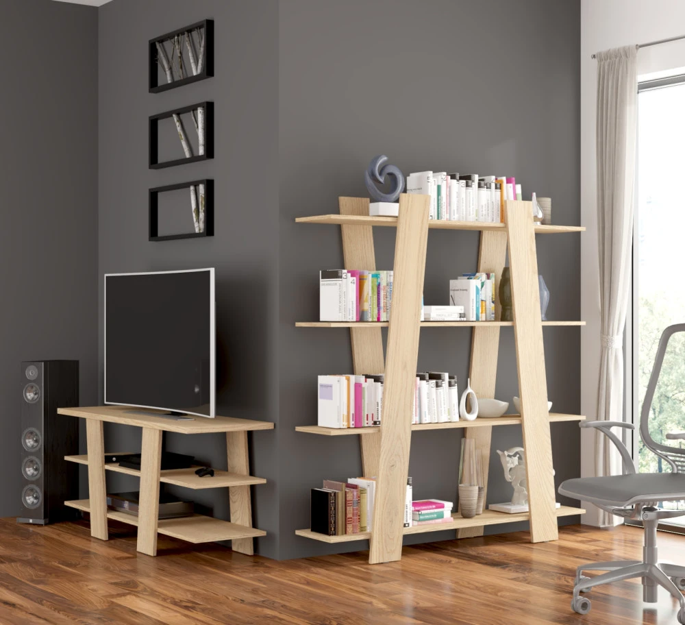 Regál Via vás zaujme svým neobvyklým avšak moderním designem a přírodním provedením. Je vyroben z kvalitních lamino desek o síle 16 mm a 25 mm. Desky mají ABS hranění, které zvyšuje odolnost pro odštípnutí hran. Součástí zásuvek a dvířek je zabudovaný systém tichého dovírání. Nabízíme vám několik barevných variant.Do jednotlivých nik si můžete vystavit své oblíbené knihy, dekorace nebo rámečky s fotografiemi. Doporučujeme si vybrat z dalších komodit systému Via, ze kterých si vytvoříte svůj vysněný obývací pokoj či pracovnu.Nábytek dodáváme v demontu.
