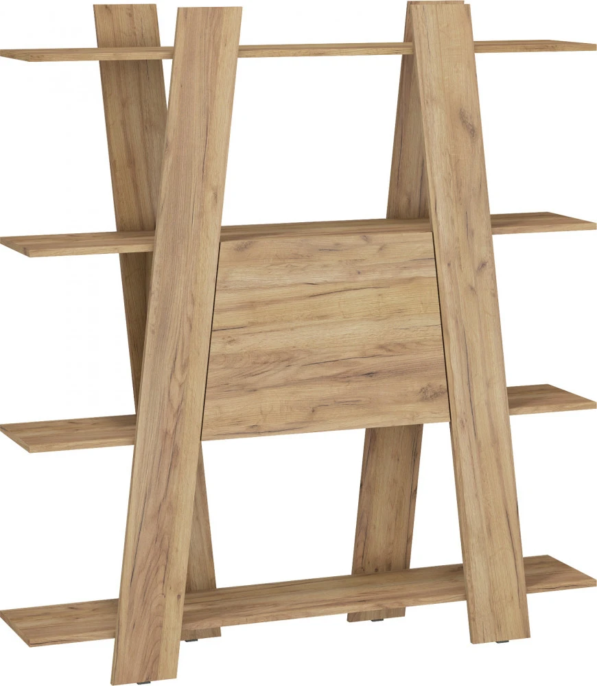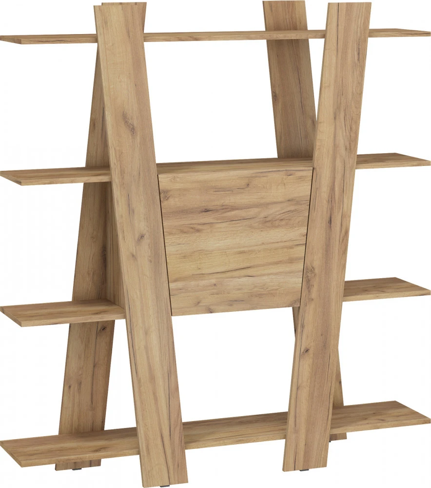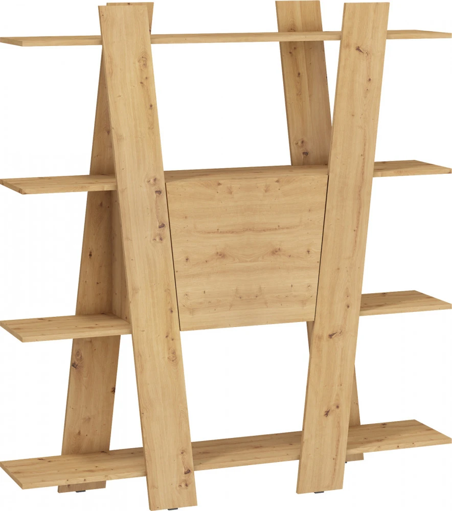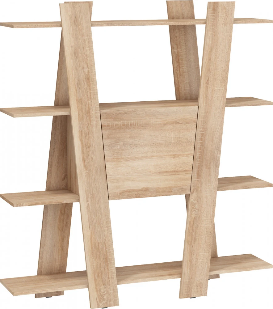 Regál Via vás zaujme svým neobvyklým avšak moderním designem a přírodním provedením. Je vyroben z kvalitních lamino desek o síle 16 mm a 25 mm. Desky mají ABS hranění, které zvyšuje odolnost pro odštípnutí hran. Součástí zásuvek a dvířek je zabudovaný systém tichého dovírání. Nabízíme vám několik barevných variant.V horní části regálu jsou 1 dvířka se svislým otevíráním. Do jednotlivých nik si můžete vystavit své oblíbené knihy, dekorace nebo rámečky s fotografiemi. Doporučujeme si vybrat z dalších komodit systému Via, ze kterých si vytvoříte svůj vysněný obývací pokoj či pracovnu.Nábytek dodáváme v demontu.