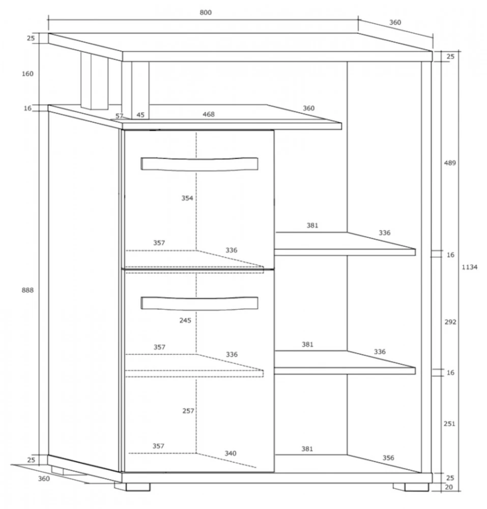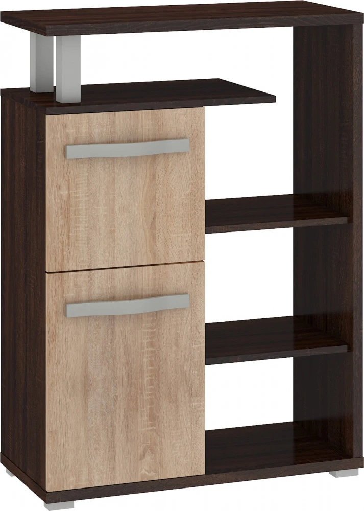 Regál vysoký 2D Angel je vyrobený z lamina o síle 16 a 25 mm. Jedná se o velice kvalitní materiál, který je odolný a zároveň zaujme příjemným vzhledem. Regál má 2 skříňkové prostory, ve spodní části je uvnitř polička.