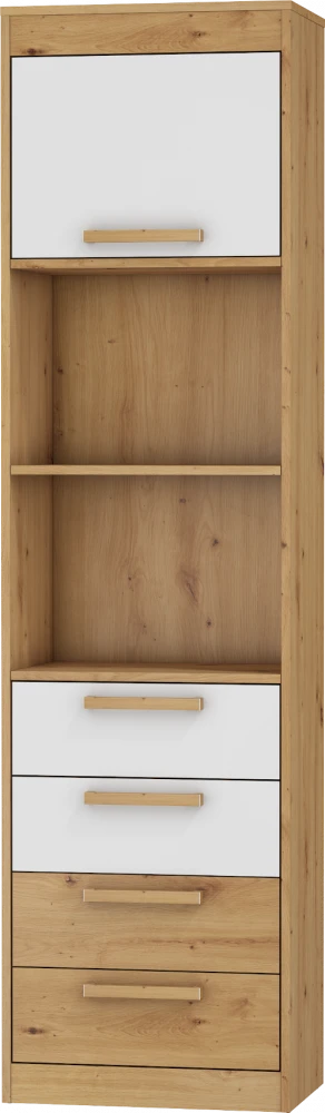 Regál W1D4S Maximus 29 se skvěle hodí do moderně zařízených interiérů. LTD materiál, ze kterého je regál vyrobený, zajišťuje vysokou odolnost a špičkovou kvalitu. Regál si můžete vybrat z několika barevných variant. Zajímavý design barev dodává regálu ještě více na luxusu a nadčasovosti. Regál má k dispozici čtyři zásuvky, skčíňku a jednu polici.