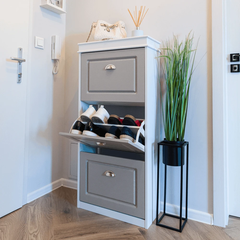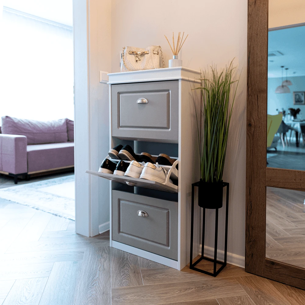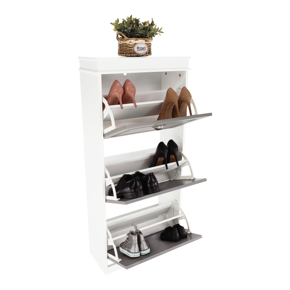 Botník, 3-řadový, šedá / bílá, SEBERTYP 2