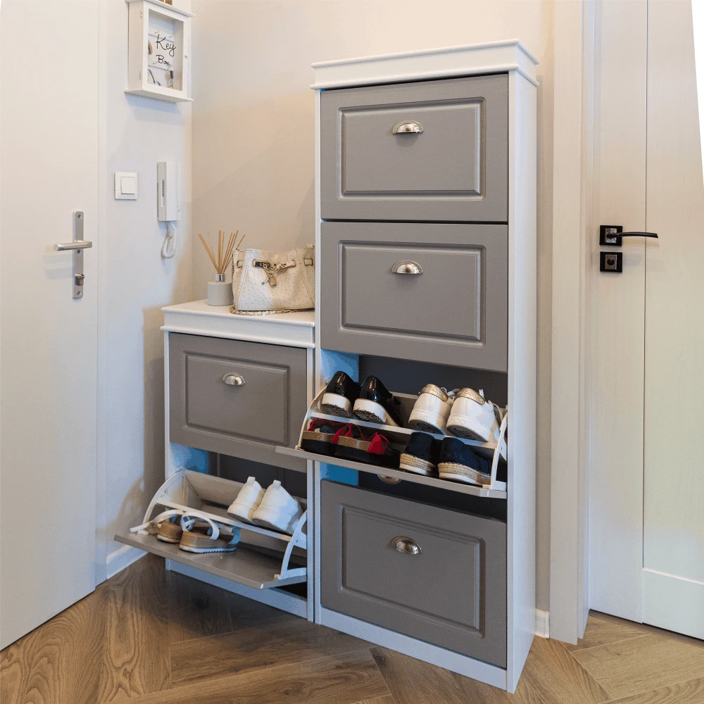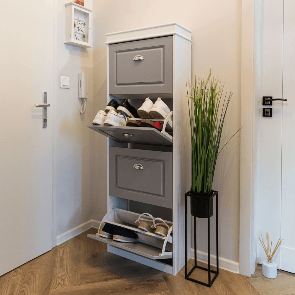 Botník, 4-řadový, bílá/šedá, SEBER TYP 3