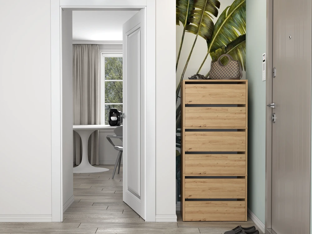 Moderní botník Modis bez úchytek je ideální volbou do každé předsíně. Pečlivé zpracování a elegantní linie dodají vaší předsíni styl i praktický úložný prostor. Botník je modulární - můžete jej prakticky libovolně rozšiřovat. Nábytek je vyroben z vysoce kvalitního lamina, které je snadno udržovatelné a odolné proti oděru.
