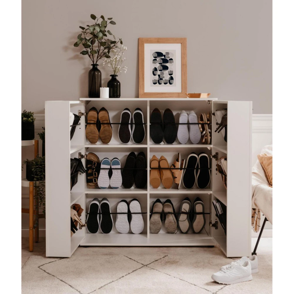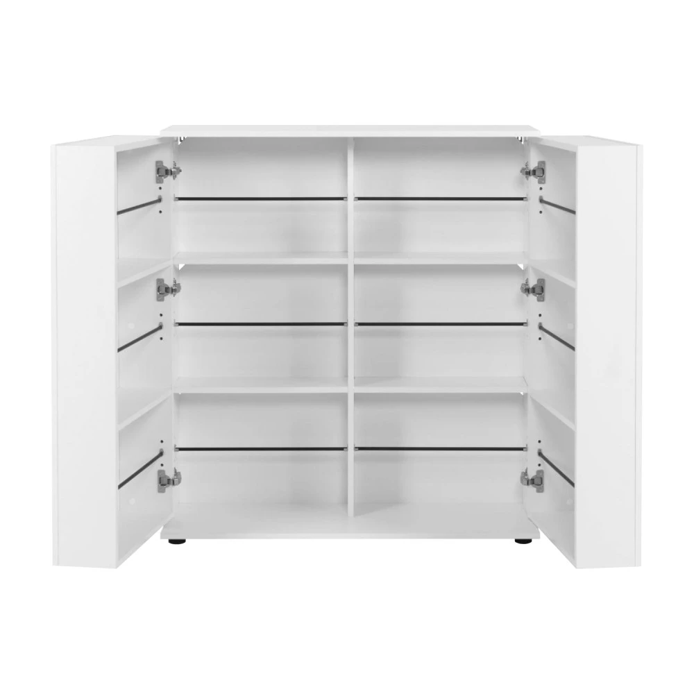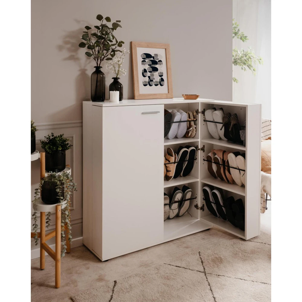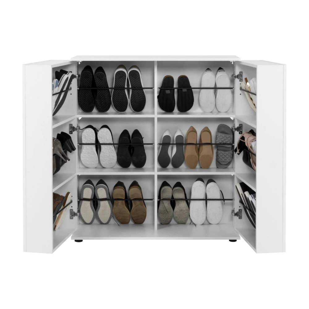 barevné provedení bílá stříbrné kovové úchytky 2 dveře, celkem 12 polic pro až 24 párů bot