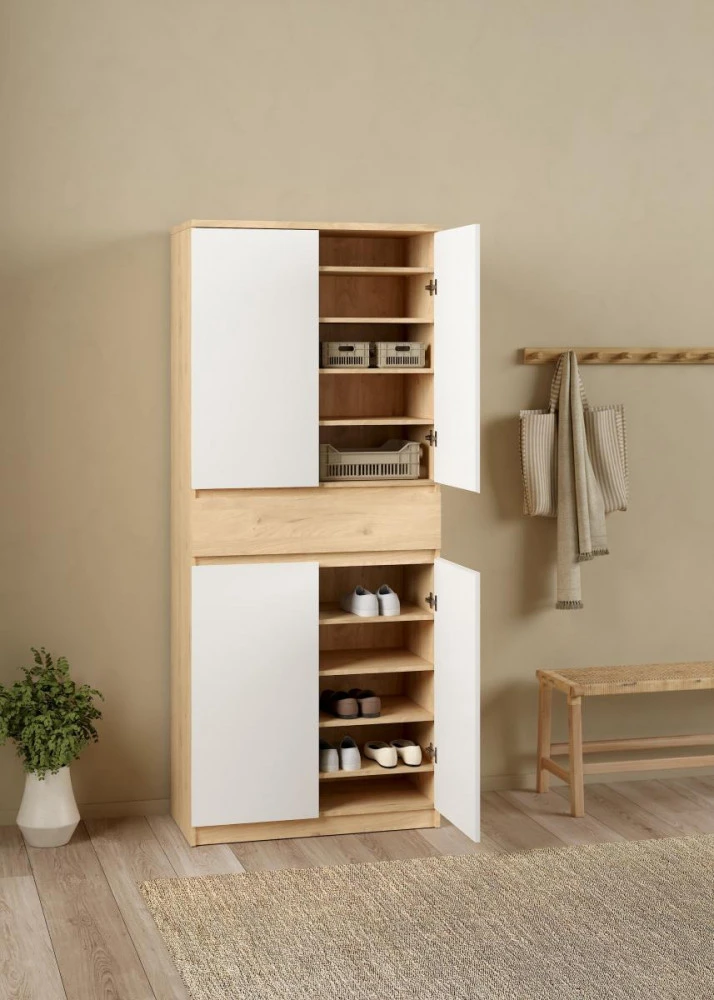 Nadčasový úložný systém, který poskytuje prostor a funkčnost. Řada Simplicity vyrobená z kvalitního lamina nabízí noční stolky, postele, komody, botníky a další úložné prostory v široké škále barevných variant a velikostí. Zboží je dodáváno v demontu. Součástí je schematický návod na montáž včetně všech potřebných spojovacích prvků. Vyobrazené doplňky a dekorace nejsou v ceně.