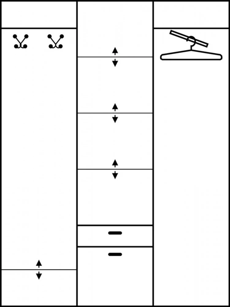 Předsíňová skříň Alexander 4 bez zrcadla má moderní design a díky praktickému úložnému prostoru je vhodným doplňkem do každého interiéru. Má výškově nastavitelné police. Předsíňová skříň je vyrobena z 16 mm lamina, na výběr z několika barevných variant. Dodáváno v demontu. Vnitřní vybavení skříně viz obrázek.