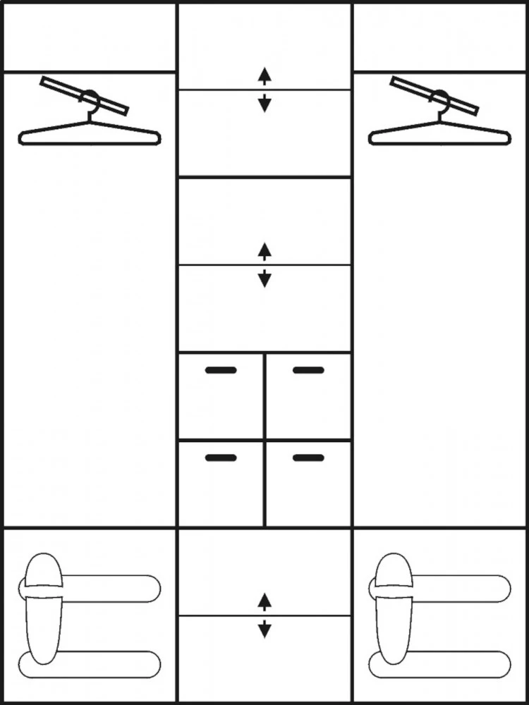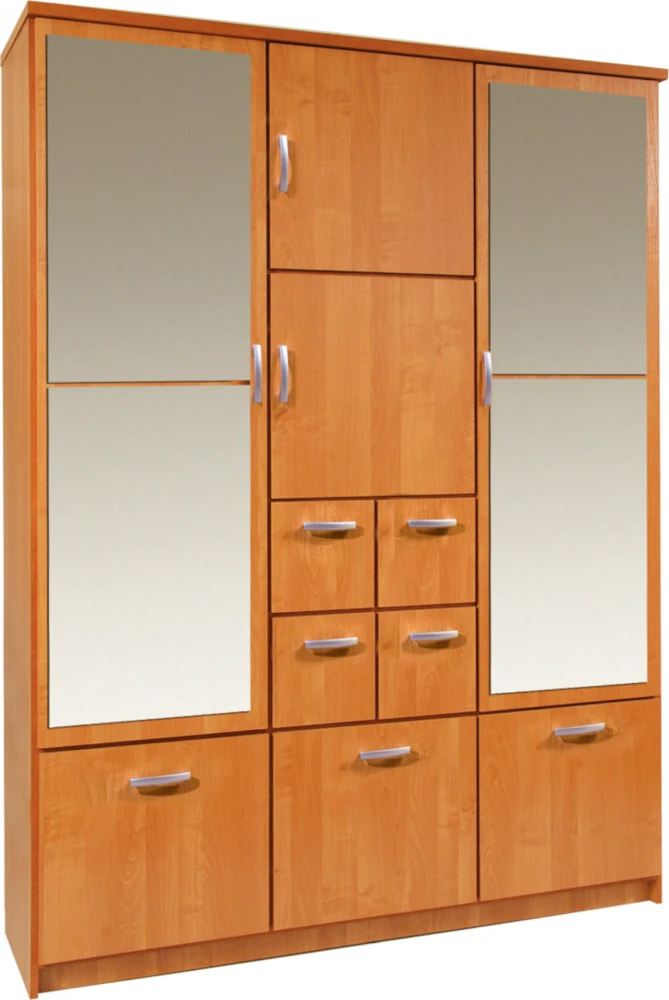 Velká předsíňová skříň Barcelona 150 se zrcadly má moderní design a je oblíbená díky velkému úložnému prostoru. Je vhodným doplňkem do každého interiéru. Má výškově nastavitelné police. Předsíňová skříň je vyrobena z 16 mm lamina, na výběr z několika barevných variant. Dodáváno v demontu. Vnitřní vybavení skříně viz obrázek.