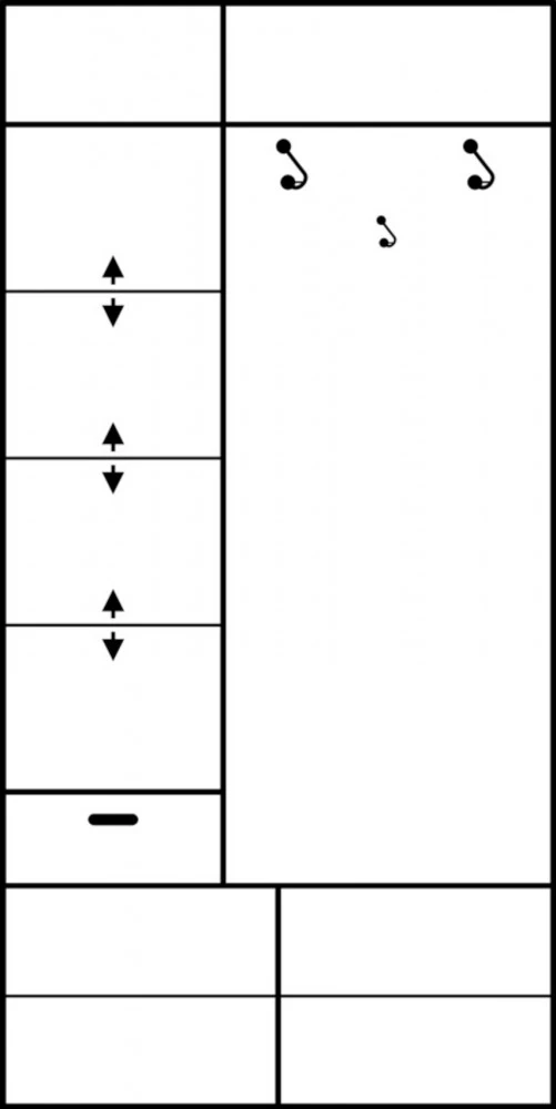 Předsíňová stěna Prince 1 se zrcadlem má jednoduchý klasický design a praktický úložný prostor. Najde uplatnění především v prostorově menších interiérech. Má výškově nastavitelné police. Předsíňová skříň je vyrobena z 16 mm lamina, na výběr z několika barevných variant. Dodáváno v demontu. Vnitřní vybavení předsíňové sestavy viz. obrázek.