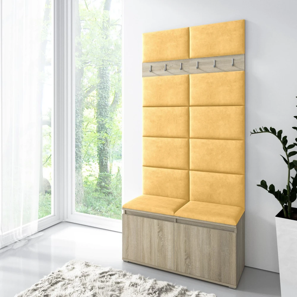 Čalouněná předsíň EMI 1 s barevnými panely je ideální volbou pro ty, kteří hledají originální a funkční řešení.Představujeme vám čalouněnou předsíň EMI, která kombinuje moderní design, praktické využití a jedinečnou estetiku. Čalouněné panely v různých barvách jsou nejen vizuálně atraktivní, ale také přinášejí pohodlí a funkčnost, díky kterým bude vaše předsíň působit útulně a stylově zároveň.Čalouněné panely EMI jsou vyrobeny z odolných materiálů, které zajišťují dlouhou životnost i snadnou údržbu. Povrchy odolné vůči nečistotám a vlhkosti jsou praktické zejména v předsíních, které jsou každodenně zatěžované.
