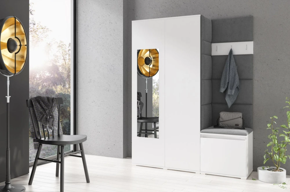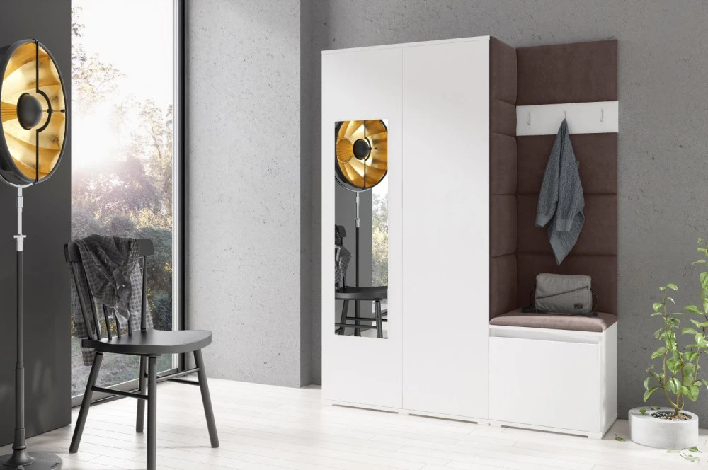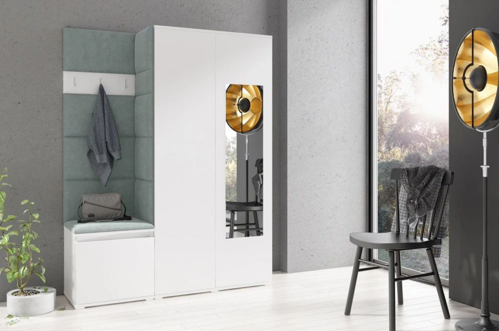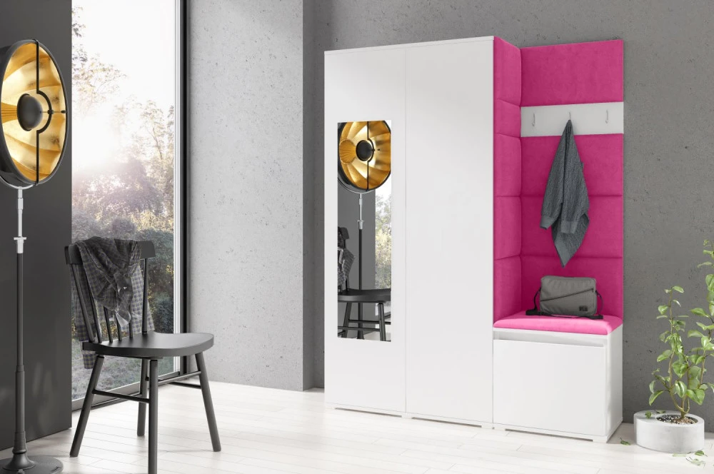 Čalouněná předsíň EMI 11 s barevnými panely je ideální volbou pro ty, kteří hledají originální a funkční řešení.Představujeme vám čalouněnou předsíň EMI, která kombinuje moderní design, praktické využití a jedinečnou estetiku. Čalouněné panely v různých barvách jsou nejen vizuálně atraktivní, ale také přinášejí pohodlí a funkčnost, díky kterým bude vaše předsíň působit útulně a stylově zároveň.Čalouněné panely EMI jsou vyrobeny z odolných materiálů, které zajišťují dlouhou životnost i snadnou údržbu. Povrchy odolné vůči nečistotám a vlhkosti jsou praktické zejména v předsíních, které jsou každodenně zatěžované. Stěnu si můžete umístit v pravo nebo v levo, taktéž si můžete sami zvolit kam dáte dvířka se zrcadlem.