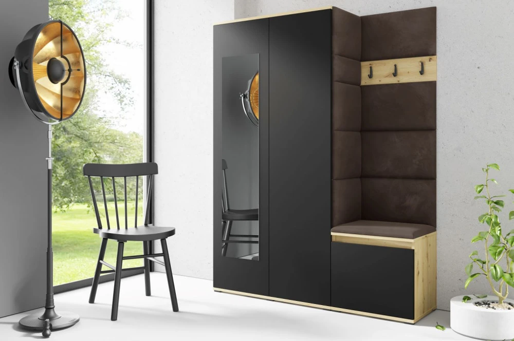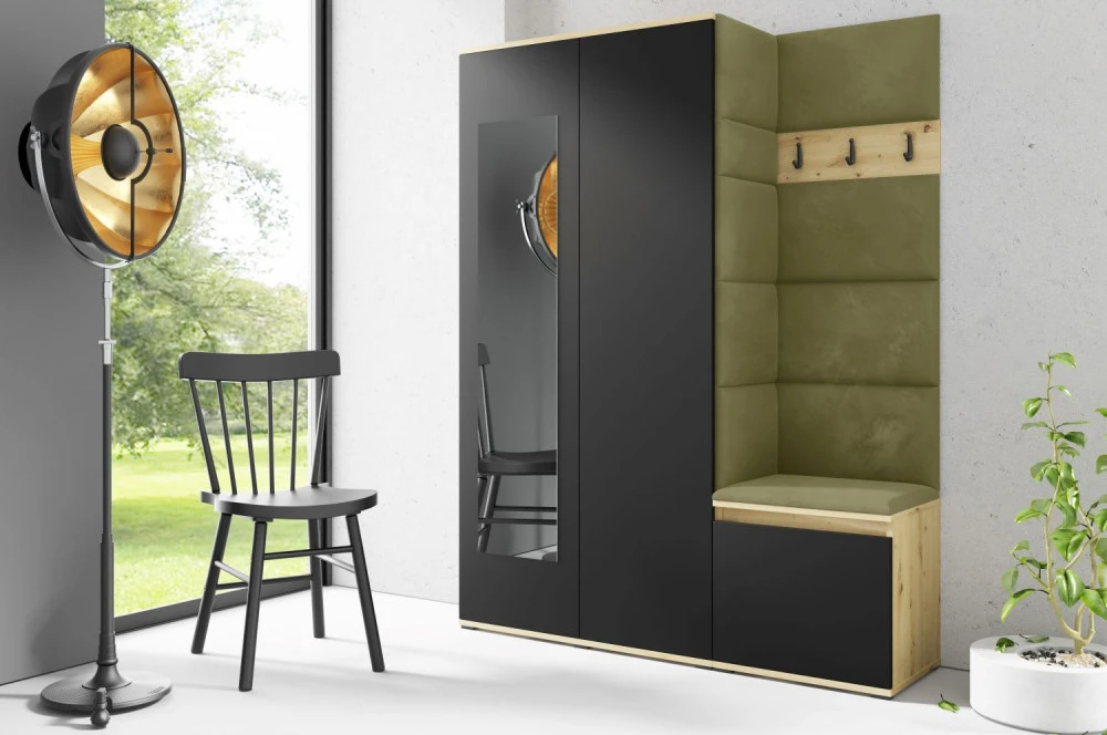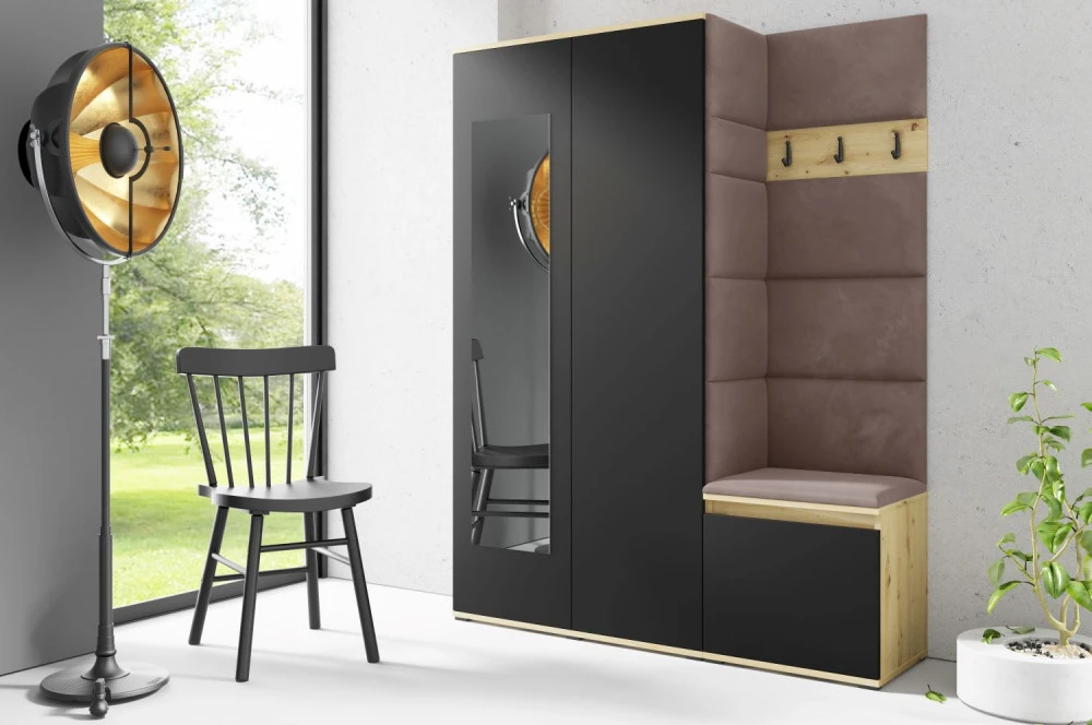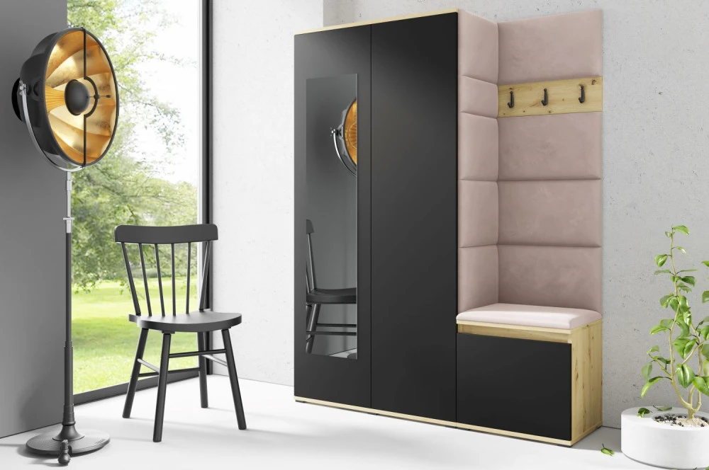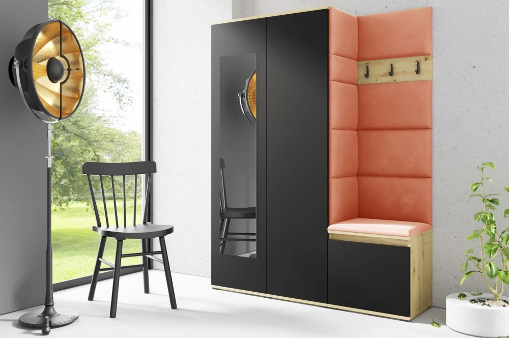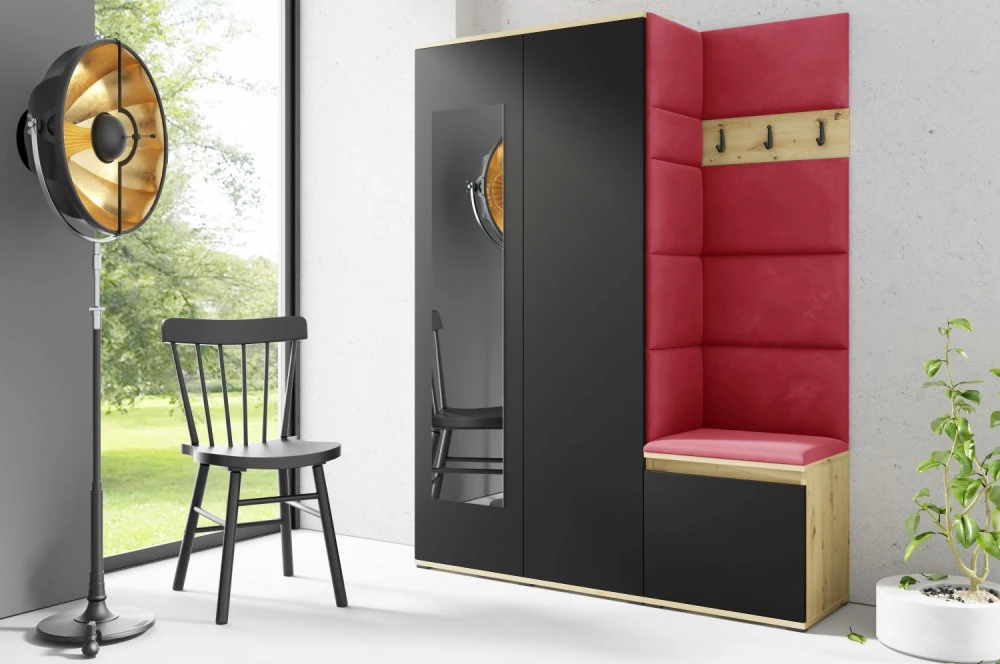Čalouněná předsíň EMI 11 s barevnými panely je ideální volbou pro ty, kteří hledají originální a funkční řešení.Představujeme vám čalouněnou předsíň EMI, která kombinuje moderní design, praktické využití a jedinečnou estetiku. Čalouněné panely v různých barvách jsou nejen vizuálně atraktivní, ale také přinášejí pohodlí a funkčnost, díky kterým bude vaše předsíň působit útulně a stylově zároveň.Čalouněné panely EMI jsou vyrobeny z odolných materiálů, které zajišťují dlouhou životnost i snadnou údržbu. Povrchy odolné vůči nečistotám a vlhkosti jsou praktické zejména v předsíních, které jsou každodenně zatěžované. Stěnu si můžete umístit v pravo nebo v levo, taktéž si můžete sami zvolit kam dáte dvířka se zrcadlem.