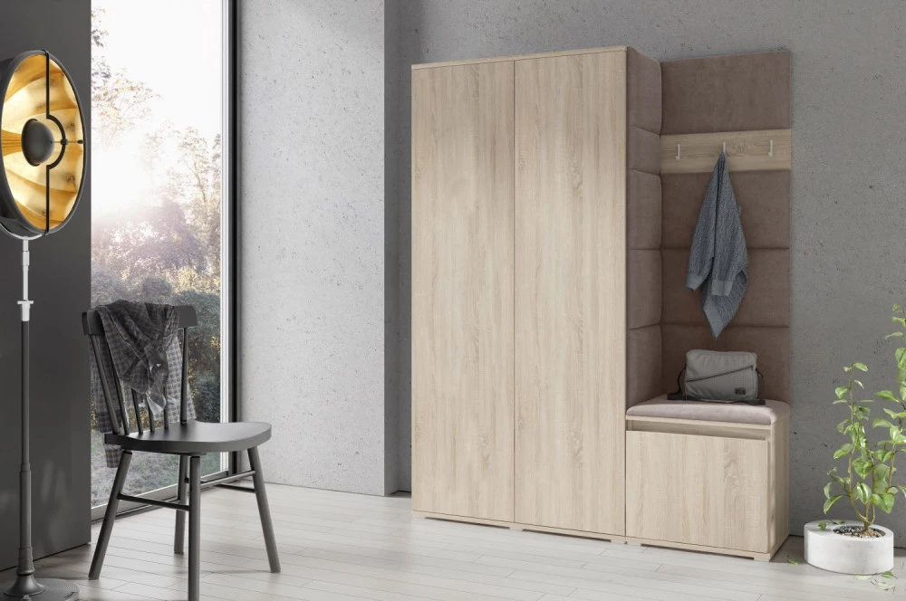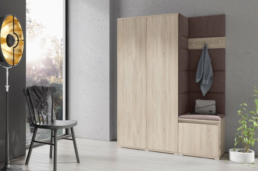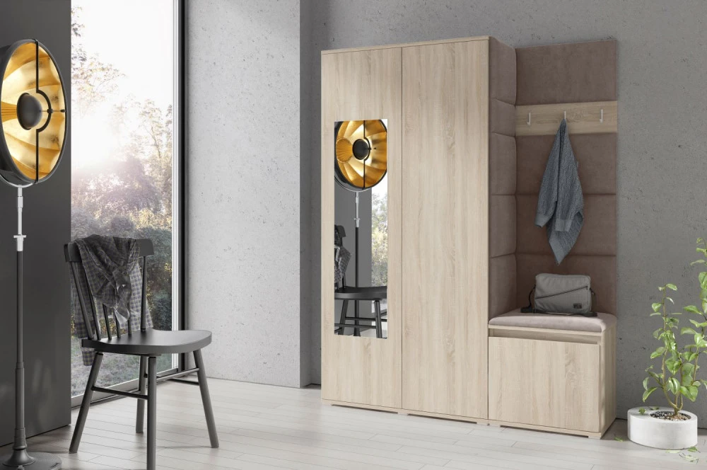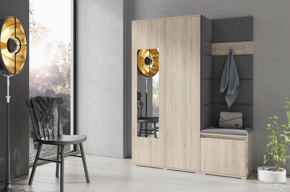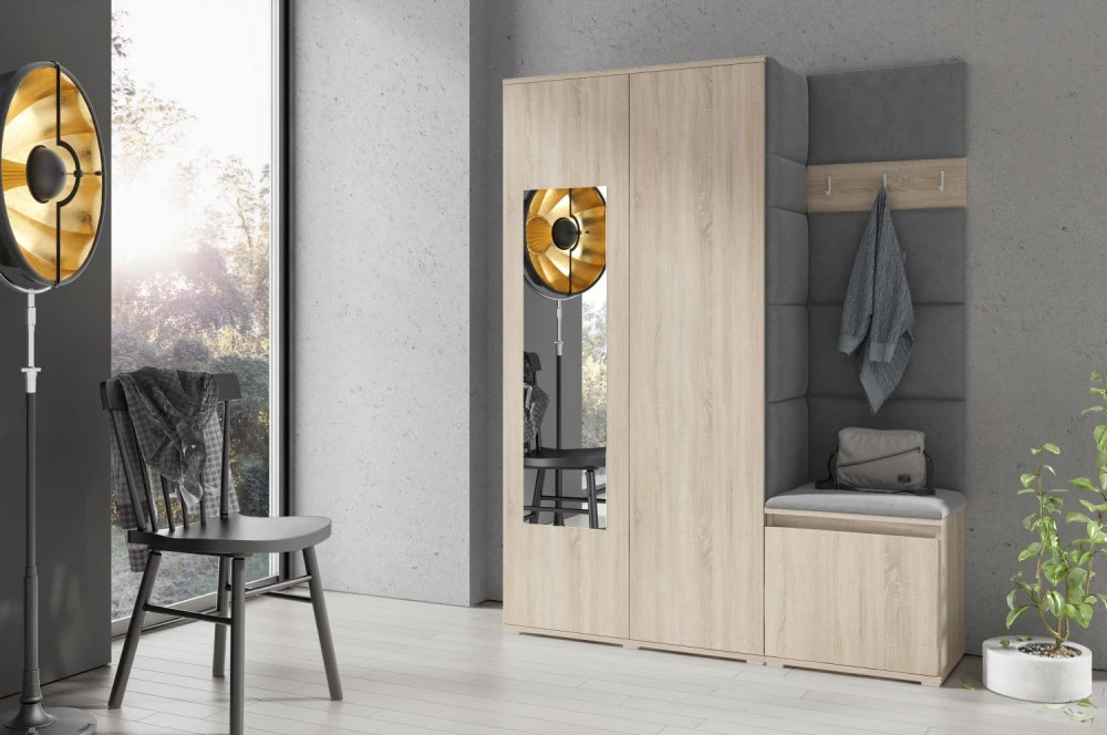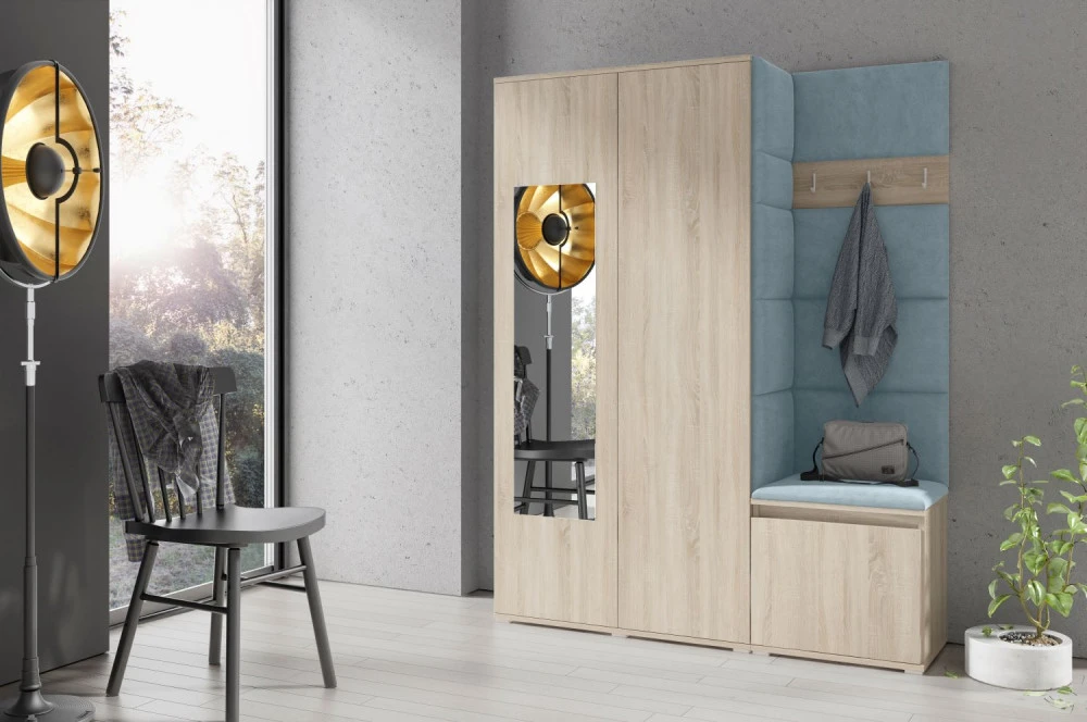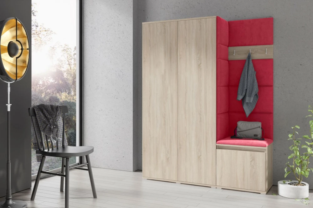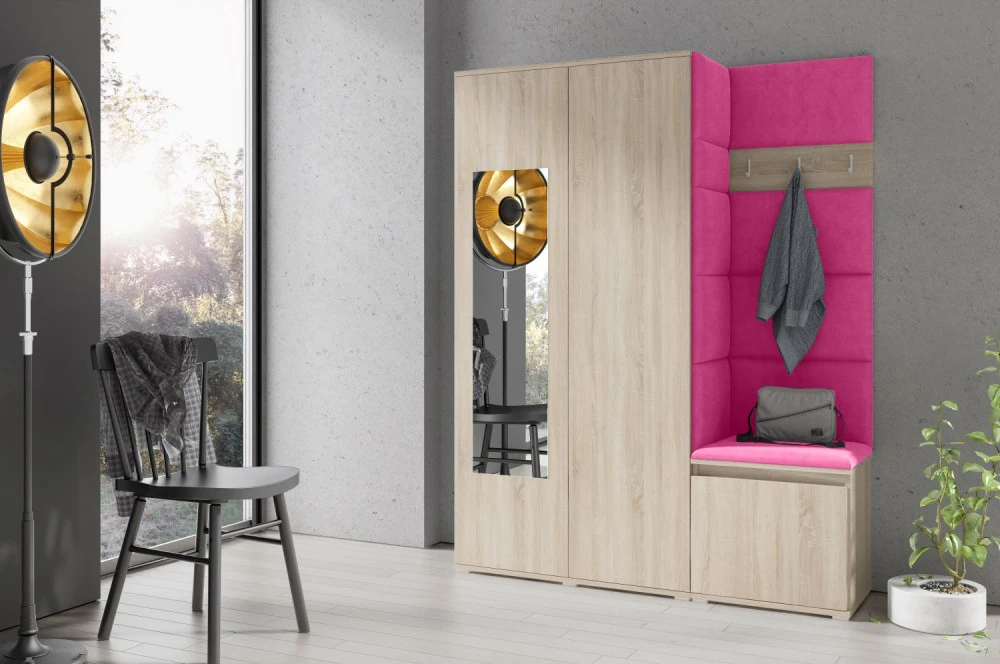 Čalouněná předsíň EMI 11 s barevnými panely je ideální volbou pro ty, kteří hledají originální a funkční řešení.Představujeme vám čalouněnou předsíň EMI, která kombinuje moderní design, praktické využití a jedinečnou estetiku. Čalouněné panely v různých barvách jsou nejen vizuálně atraktivní, ale také přinášejí pohodlí a funkčnost, díky kterým bude vaše předsíň působit útulně a stylově zároveň.Čalouněné panely EMI jsou vyrobeny z odolných materiálů, které zajišťují dlouhou životnost i snadnou údržbu. Povrchy odolné vůči nečistotám a vlhkosti jsou praktické zejména v předsíních, které jsou každodenně zatěžované. Stěnu si můžete umístit v pravo nebo v levo, taktéž si můžete sami zvolit kam dáte dvířka se zrcadlem.