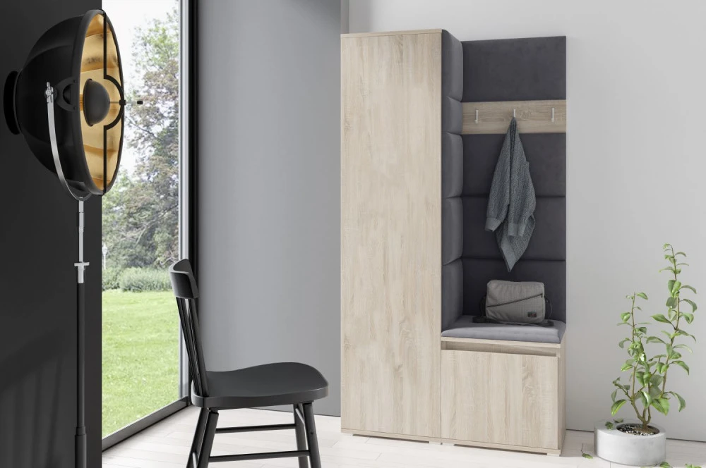 Čalouněná předsíň EMI 13 s barevnými panely je ideální volbou pro ty, kteří hledají originální a funkční řešení.Představujeme vám čalouněnou předsíň EMI, která kombinuje moderní design, praktické využití a jedinečnou estetiku. Čalouněné panely v různých barvách jsou nejen vizuálně atraktivní, ale také přinášejí pohodlí a funkčnost, díky kterým bude vaše předsíň působit útulně a stylově zároveň.Čalouněné panely EMI jsou vyrobeny z odolných materiálů, které zajišťují dlouhou životnost i snadnou údržbu. Povrchy odolné vůči nečistotám a vlhkosti jsou praktické zejména v předsíních, které jsou každodenně zatěžované. Stěnu si můžete umístit v pravo nebo v levo..