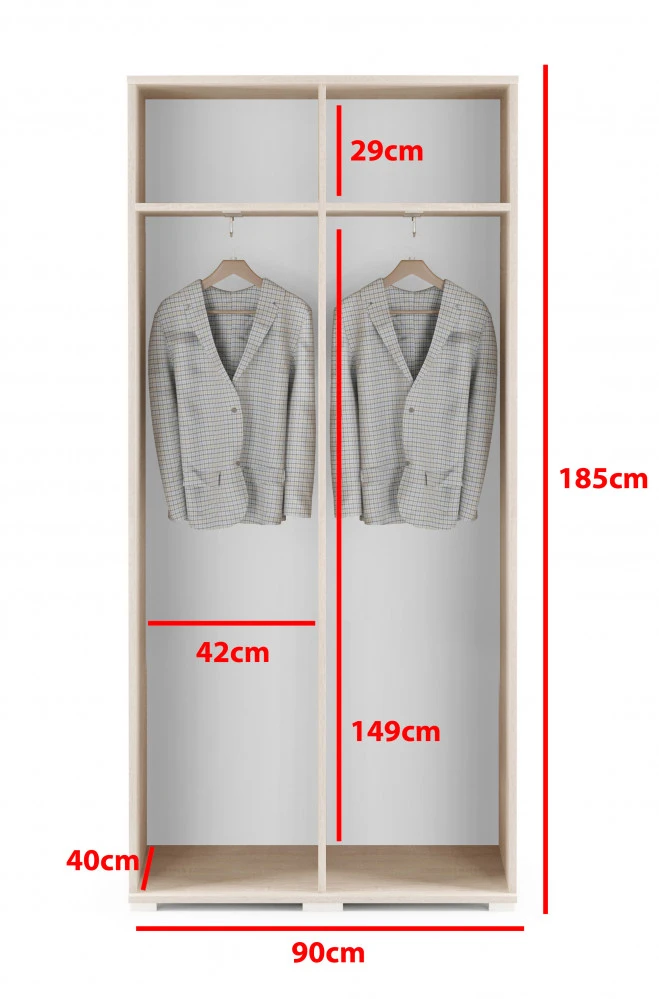- 1x 2-dveřová šatní skříň se zrcadlem