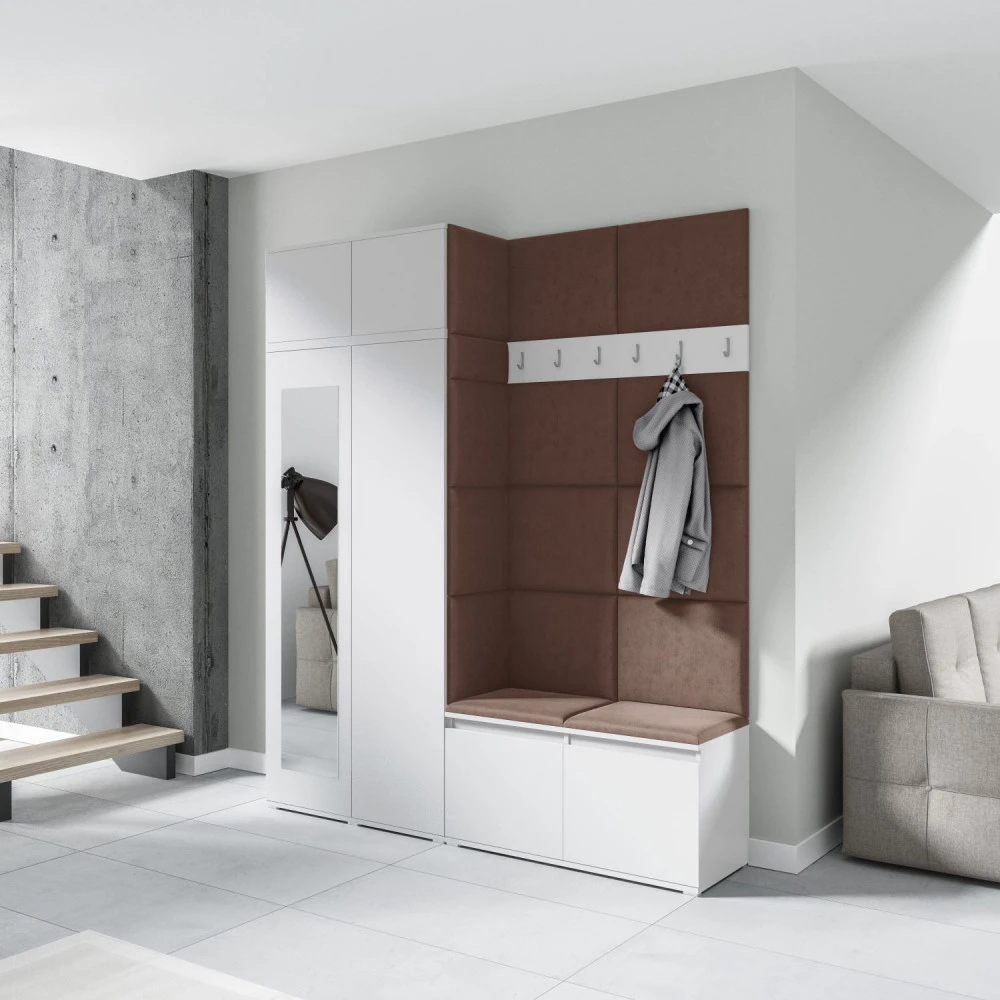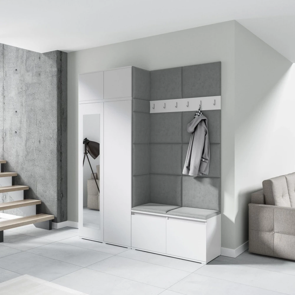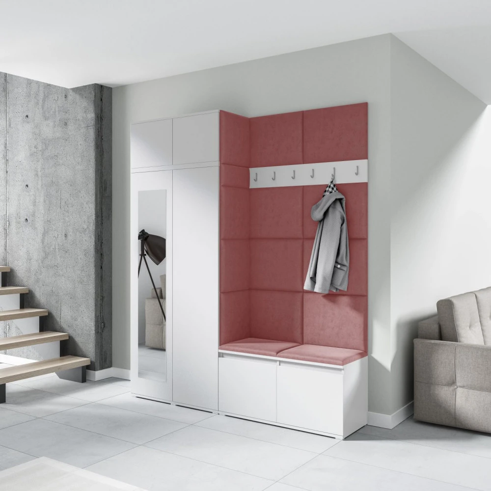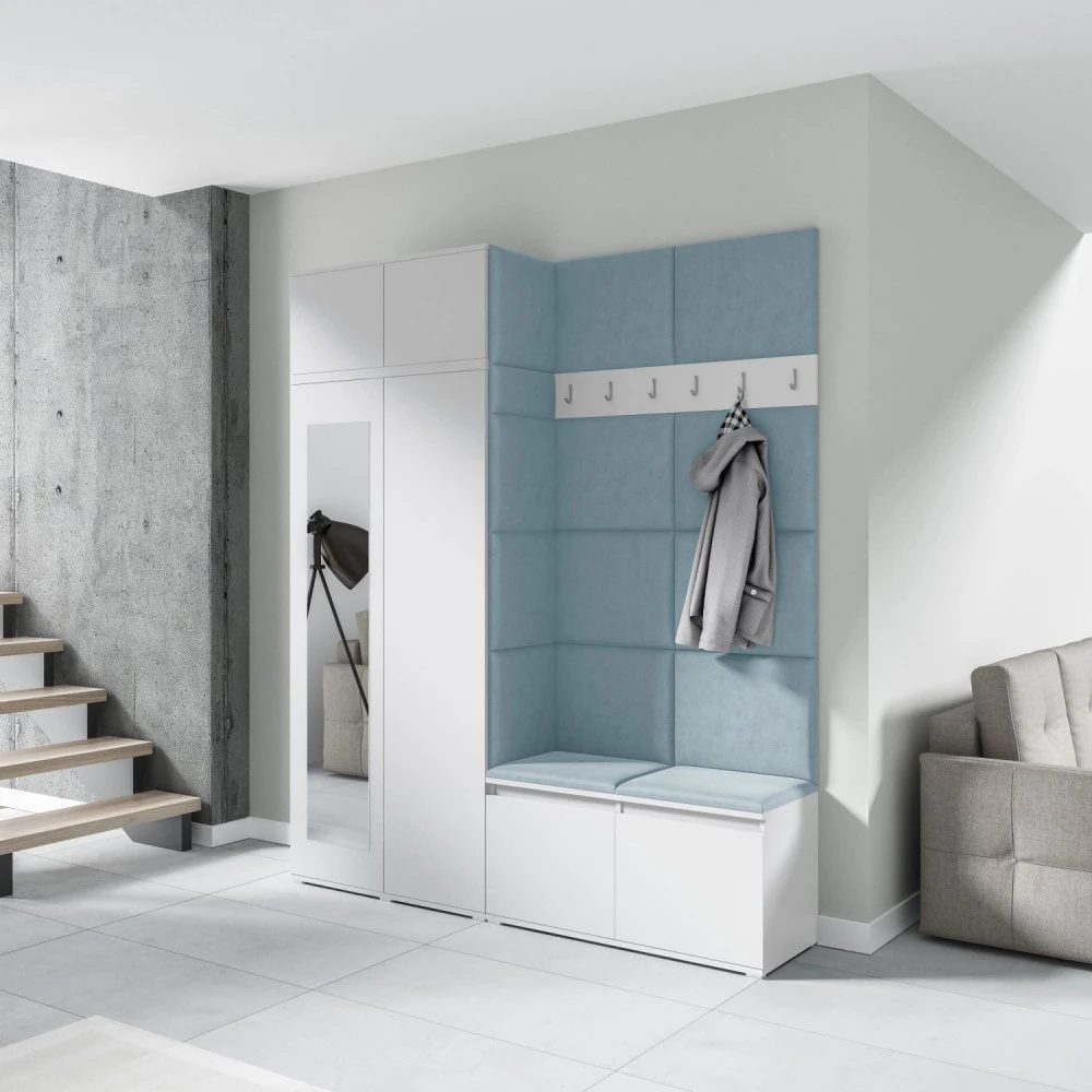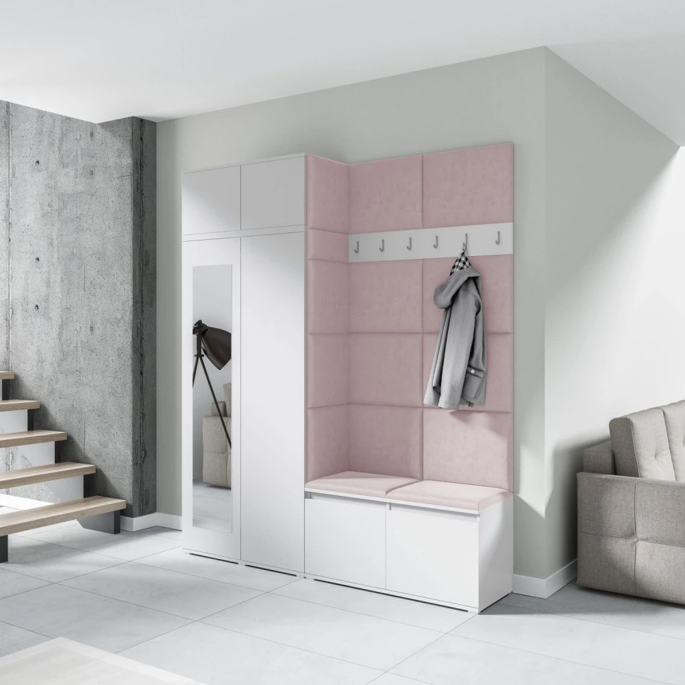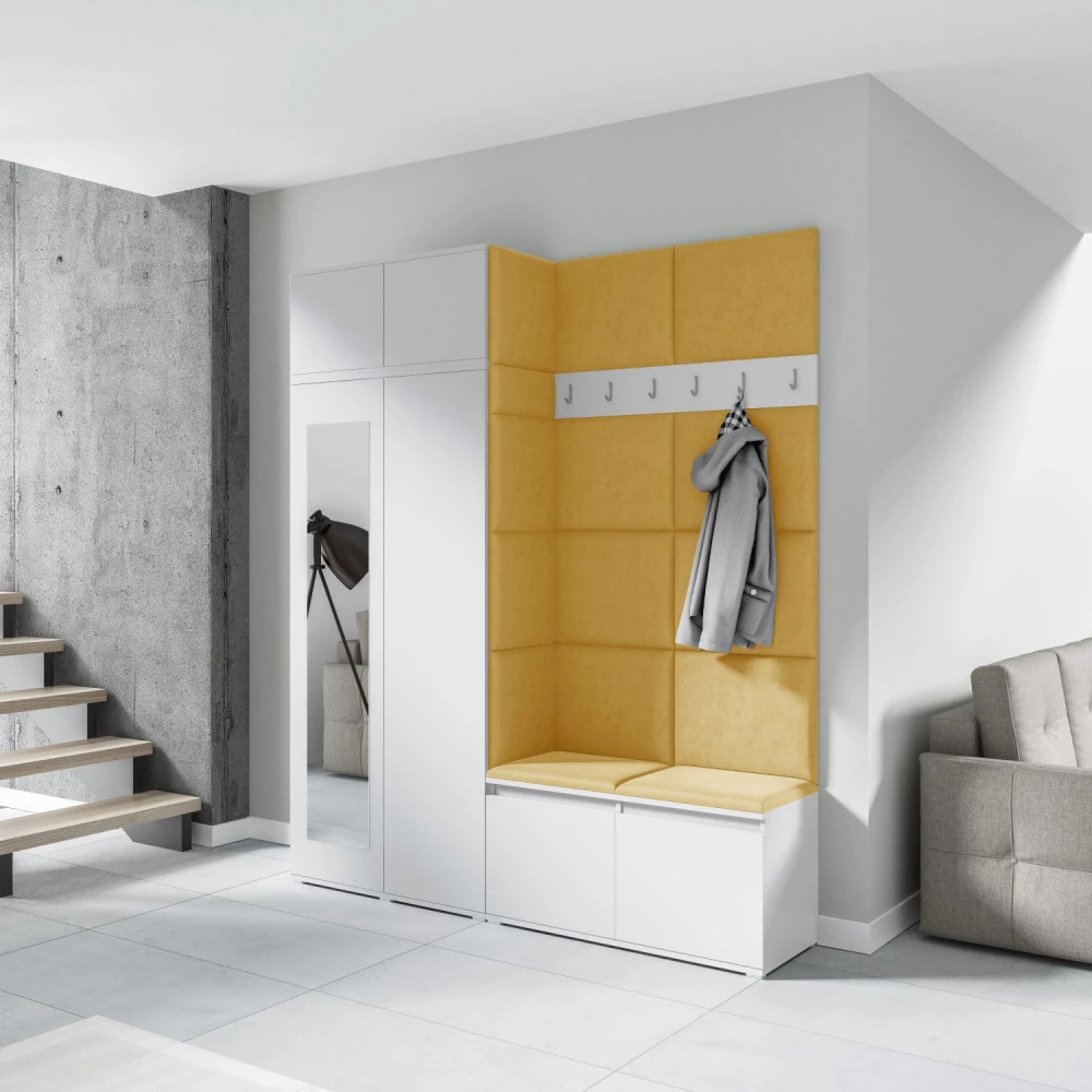 Čalouněná předsíň EMI 19 s barevnými panely je ideální volbou pro ty, kteří hledají originální a funkční řešení.Představujeme vám čalouněnou předsíň EMI, která kombinuje moderní design, praktické využití a jedinečnou estetiku. Čalouněné panely v různých barvách jsou nejen vizuálně atraktivní, ale také přinášejí pohodlí a funkčnost, díky kterým bude vaše předsíň působit útulně a stylově zároveň.Čalouněné panely EMI jsou vyrobeny z odolných materiálů, které zajišťují dlouhou životnost i snadnou údržbu. Povrchy odolné vůči nečistotám a vlhkosti jsou praktické zejména v předsíních, které jsou každodenně zatěžované. Stěnu si můžete umístit v pravo nebo v levo, taktéž si můžete sami zvolit kam dáte dvířka se zrcadlem.