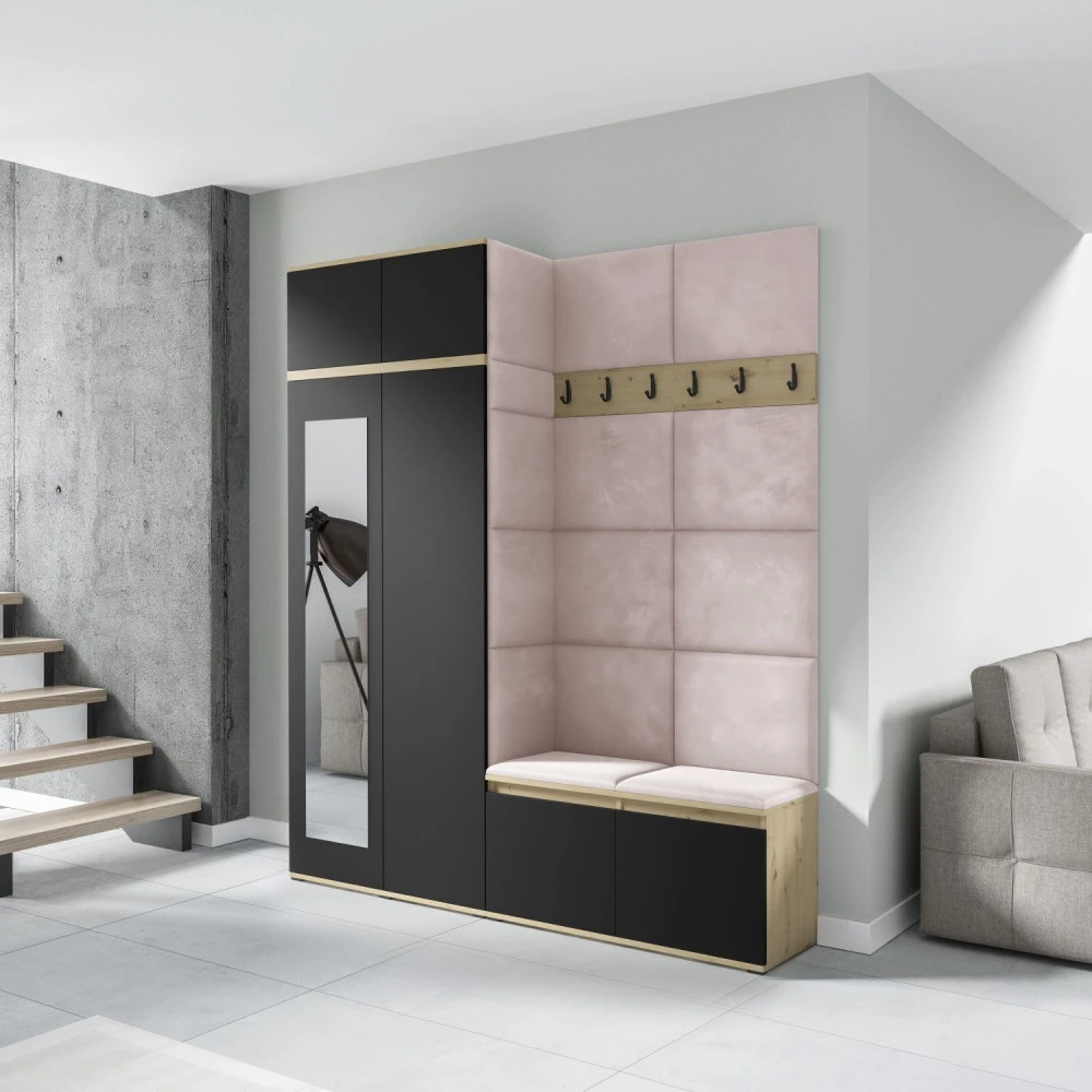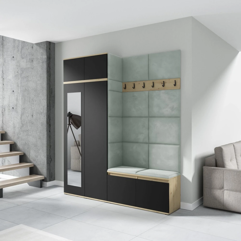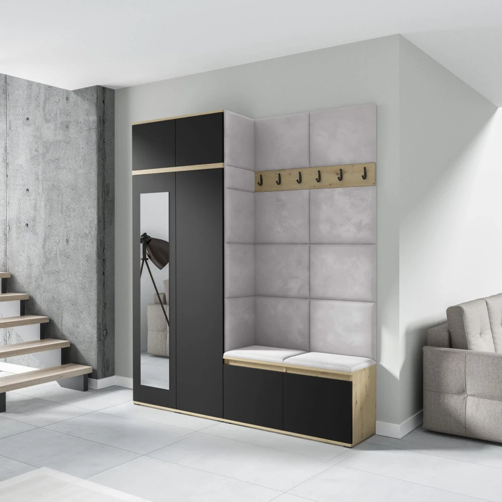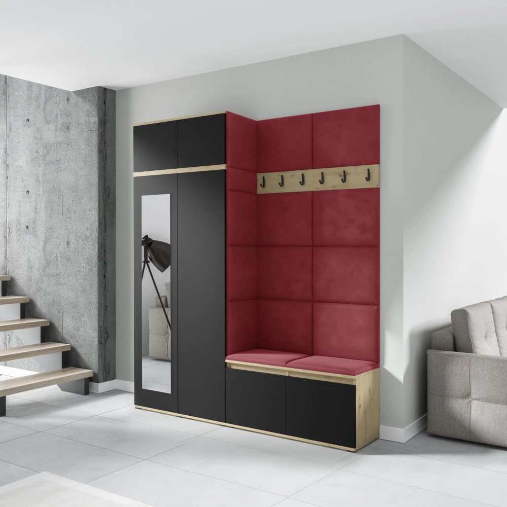 Čalouněná předsíň EMI 19 s barevnými panely je ideální volbou pro ty, kteří hledají originální a funkční řešení.Představujeme vám čalouněnou předsíň EMI, která kombinuje moderní design, praktické využití a jedinečnou estetiku. Čalouněné panely v různých barvách jsou nejen vizuálně atraktivní, ale také přinášejí pohodlí a funkčnost, díky kterým bude vaše předsíň působit útulně a stylově zároveň.Čalouněné panely EMI jsou vyrobeny z odolných materiálů, které zajišťují dlouhou životnost i snadnou údržbu. Povrchy odolné vůči nečistotám a vlhkosti jsou praktické zejména v předsíních, které jsou každodenně zatěžované. Stěnu si můžete umístit v pravo nebo v levo, taktéž si můžete sami zvolit kam dáte dvířka se zrcadlem.