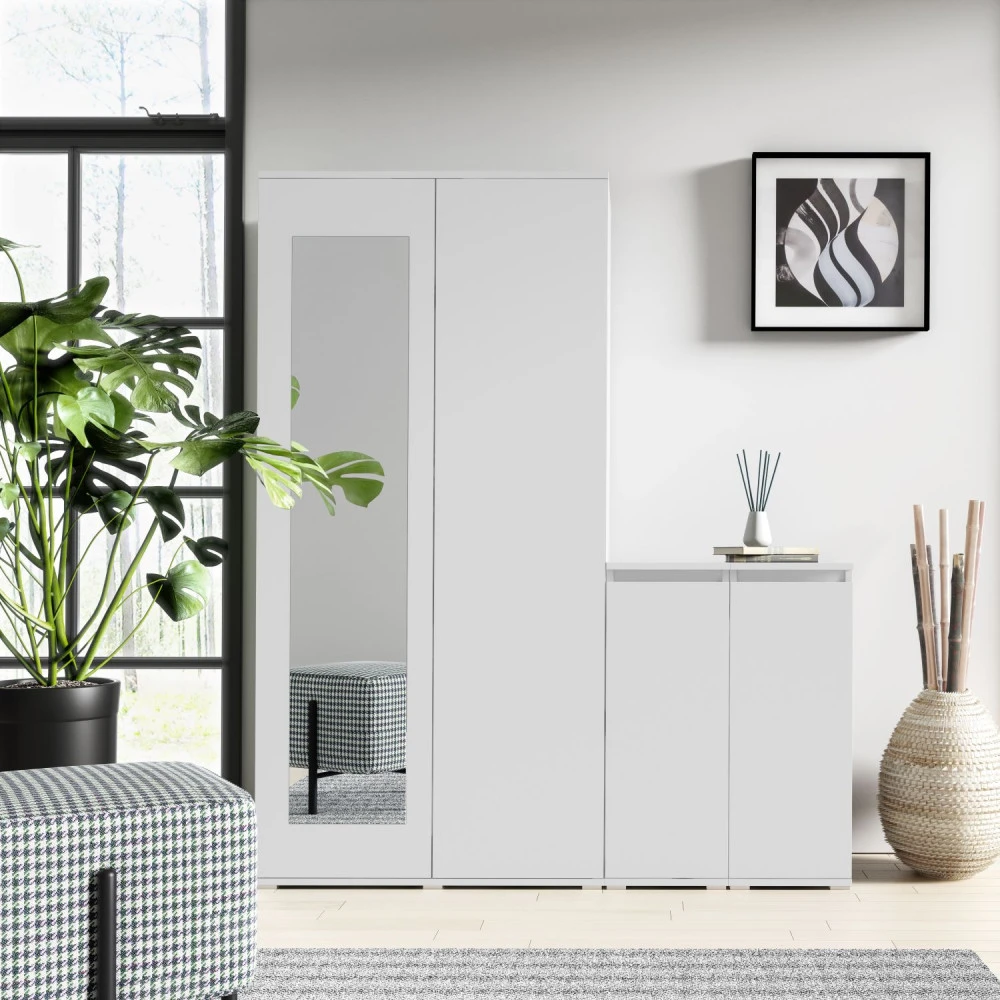 Předsíň EMI 24 je moderní a praktické řešení pro každou předsíň, které kombinuje stylový design s maximální funkčností. Tato stěna nabízí 2-dvéřovou skříň se zrcadlem, 2x komodu, které mají kombinaci úložných prostor a elegantního vzhledu, díky čemuž se stane nejen praktickým, ale i estetickým doplňkem vašeho interiéru.Stěnu si můžete umístit v pravo nebo v levo. Skříň má velké leštěné zrcadlo, které ji dodává luxusní vzhled.
