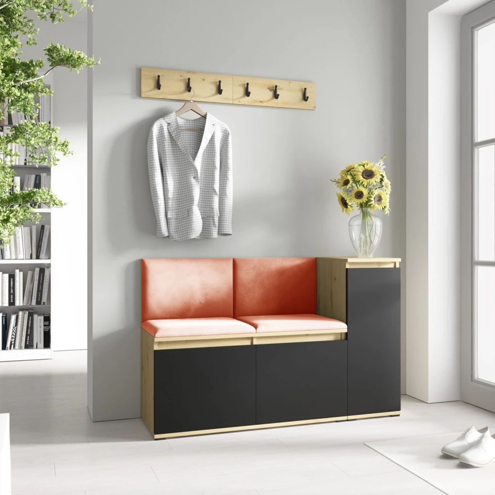 Čalouněná předsíň EMI 25 s barevnými panely je ideální volbou pro ty, kteří hledají originální a funkční řešení.Představujeme vám čalouněnou předsíň EMI, která kombinuje moderní design, praktické využití a jedinečnou estetiku. Čalouněné panely v různých barvách jsou nejen vizuálně atraktivní, ale také přinášejí pohodlí a funkčnost, díky kterým bude vaše předsíň působit útulně a stylově zároveň.Čalouněné panely EMI jsou vyrobeny z odolných materiálů, které zajišťují dlouhou životnost i snadnou údržbu. Povrchy odolné vůči nečistotám a vlhkosti jsou praktické zejména v předsíních, které jsou každodenně zatěžované. Stěnu si můžete umístit v pravo nebo v levo.