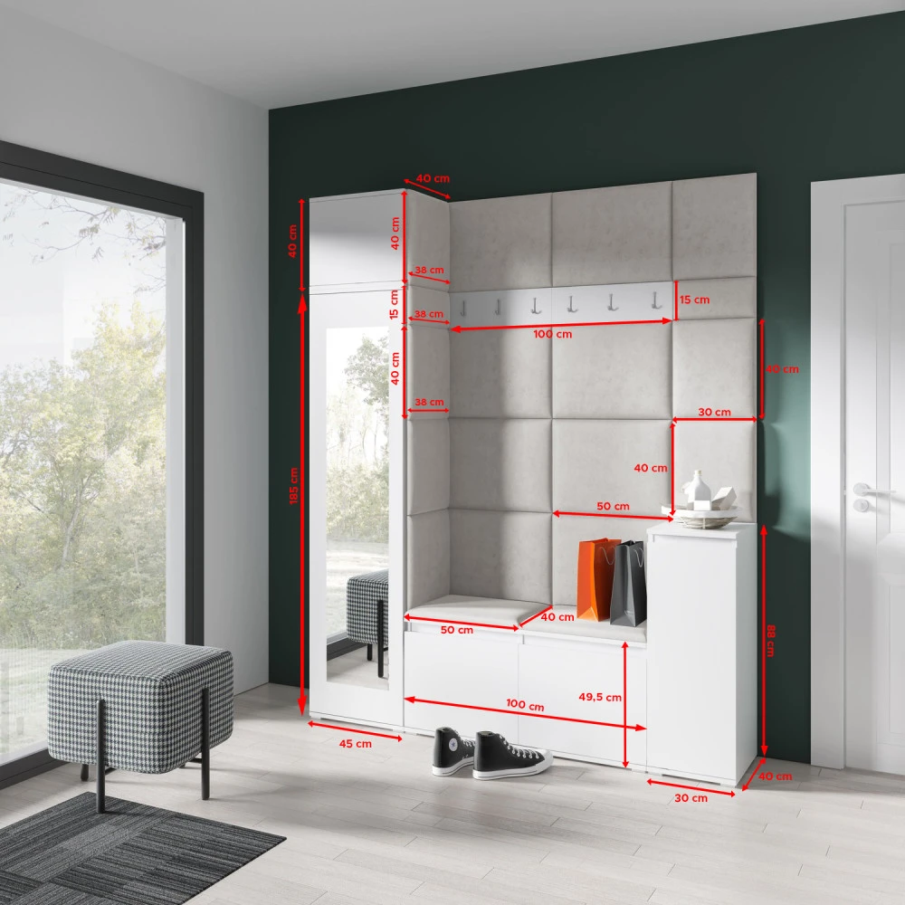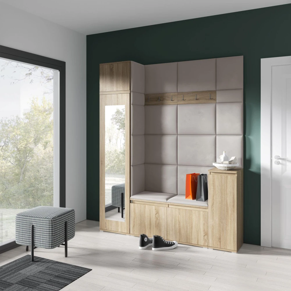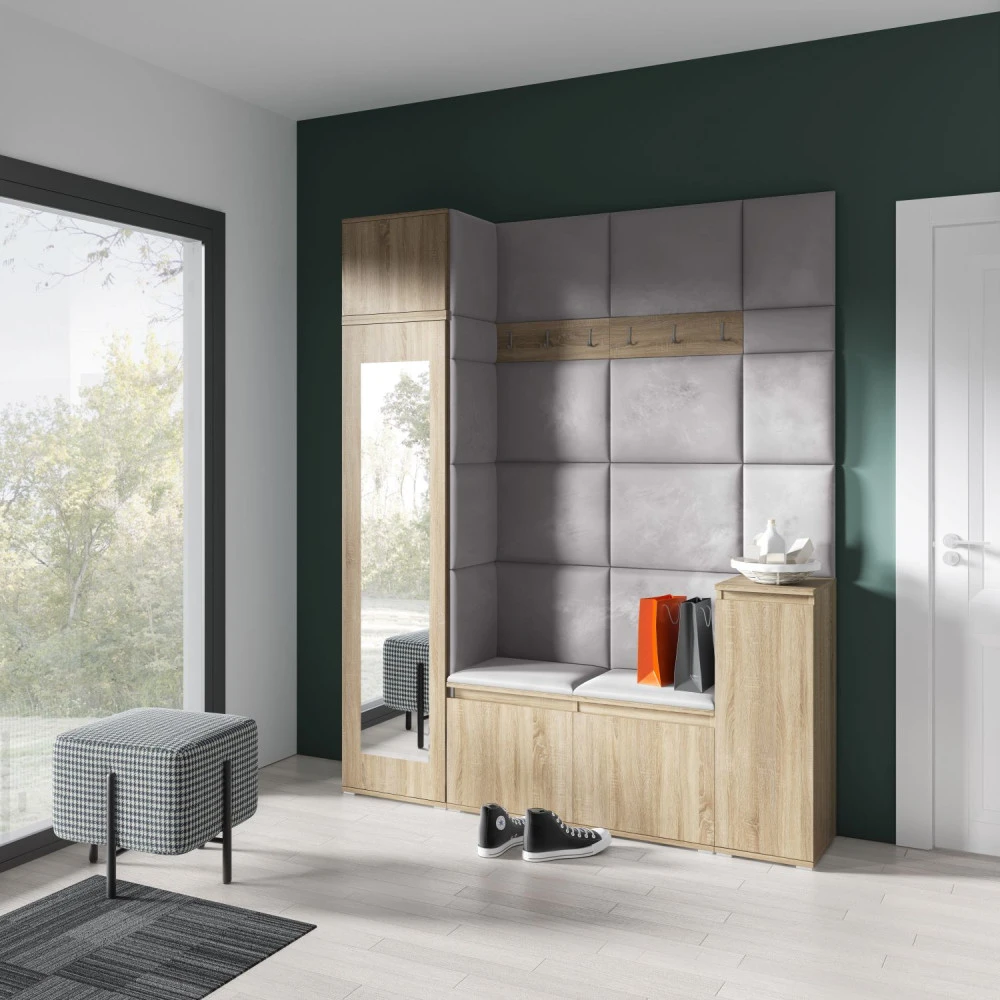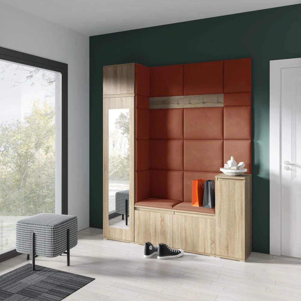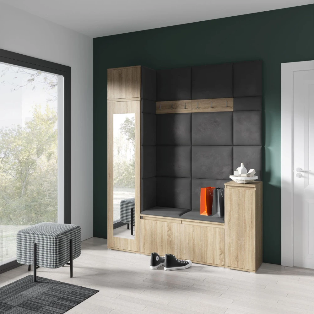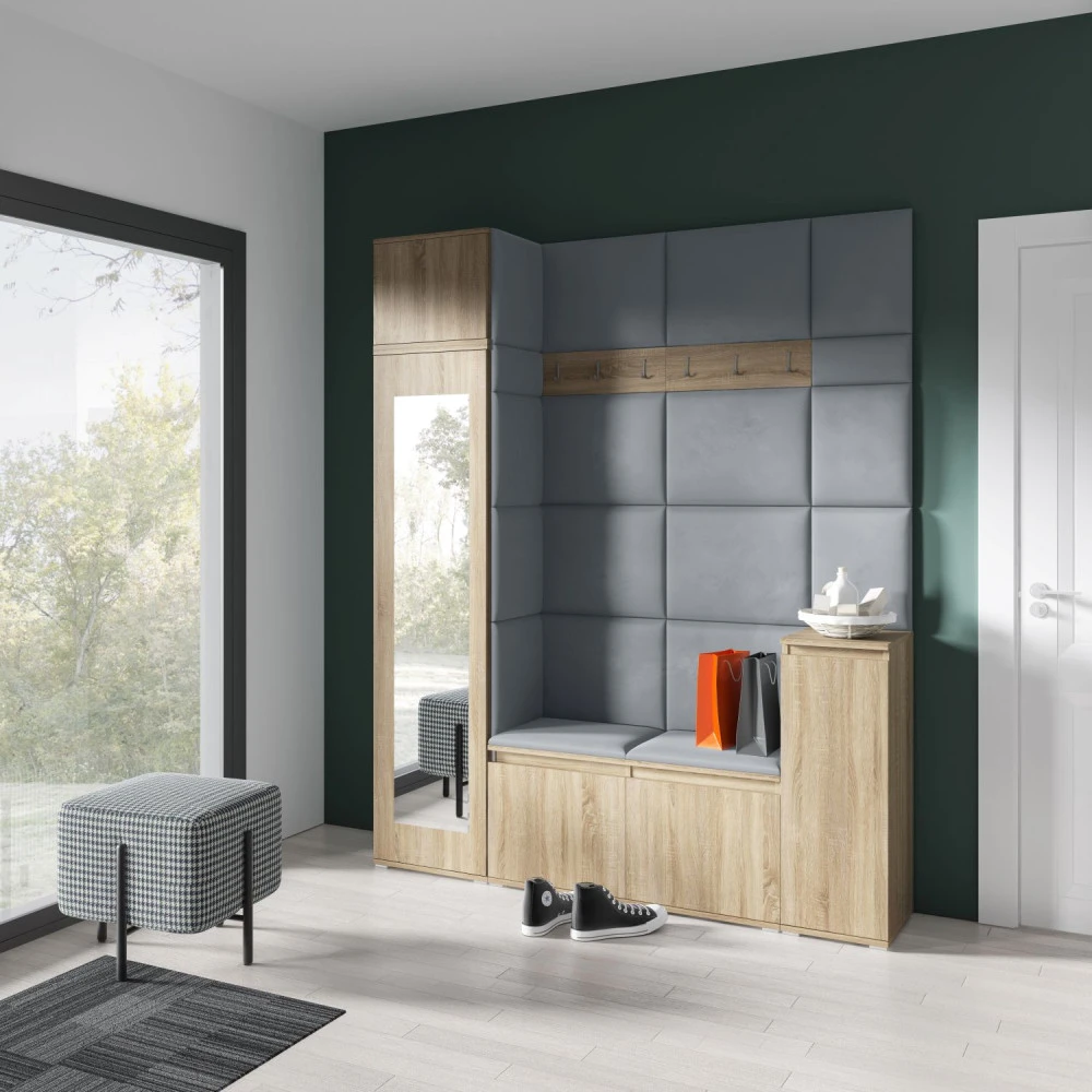 Čalouněná předsíň EMI 29 s barevnými panely je ideální volbou pro ty, kteří hledají originální a funkční řešení.Představujeme vám čalouněnou předsíň EMI, která kombinuje moderní design, praktické využití a jedinečnou estetiku. Čalouněné panely v různých barvách jsou nejen vizuálně atraktivní, ale také přinášejí pohodlí a funkčnost, díky kterým bude vaše předsíň působit útulně a stylově zároveň.Čalouněné panely EMI jsou vyrobeny z odolných materiálů, které zajišťují dlouhou životnost i snadnou údržbu. Povrchy odolné vůči nečistotám a vlhkosti jsou praktické zejména v předsíních, které jsou každodenně zatěžované. Stěnu si můžete umístit v pravo nebo v levo.