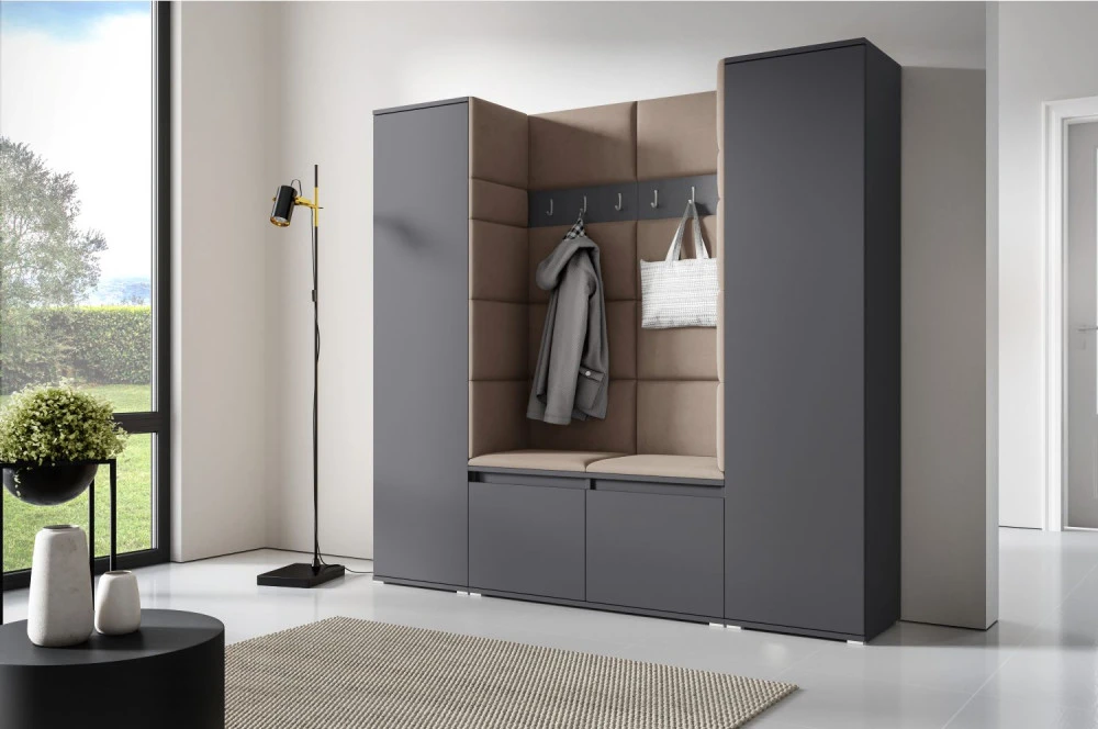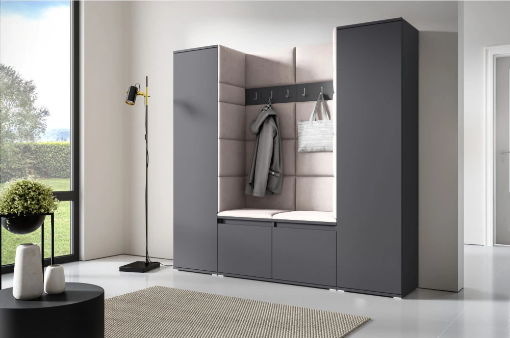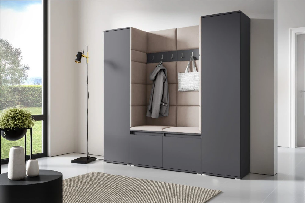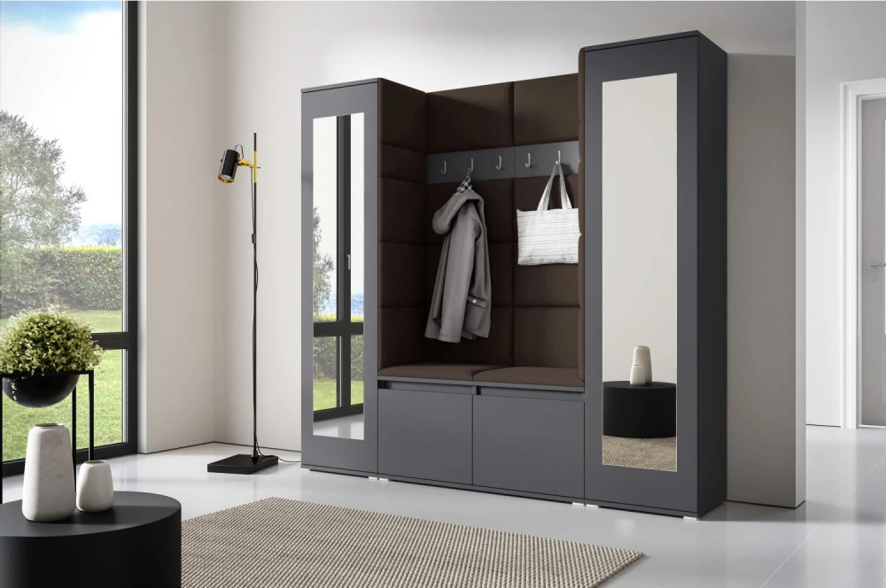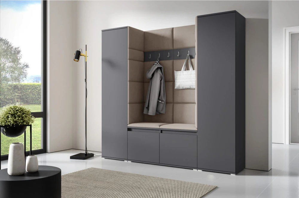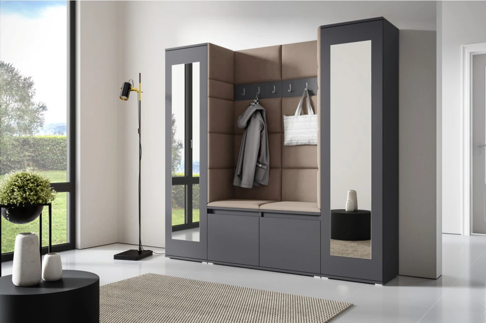Čalouněná předsíň EMI 31 s barevnými panely je ideální volbou pro ty, kteří hledají originální a funkční řešení.Představujeme vám čalouněnou předsíň EMI, která kombinuje moderní design, praktické využití a jedinečnou estetiku. Čalouněné panely v různých barvách jsou nejen vizuálně atraktivní, ale také přinášejí pohodlí a funkčnost, díky kterým bude vaše předsíň působit útulně a stylově zároveň.Čalouněné panely EMI jsou vyrobeny z odolných materiálů, které zajišťují dlouhou životnost i snadnou údržbu. Povrchy odolné vůči nečistotám a vlhkosti jsou praktické zejména v předsíních, které jsou každodenně zatěžované. Šatní skříně jsou k dispozici se zrcadly nebo bez nich.