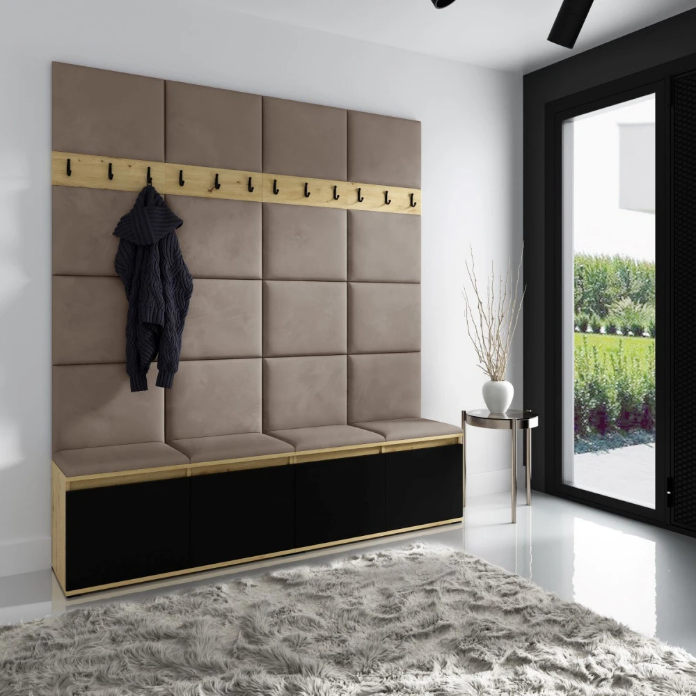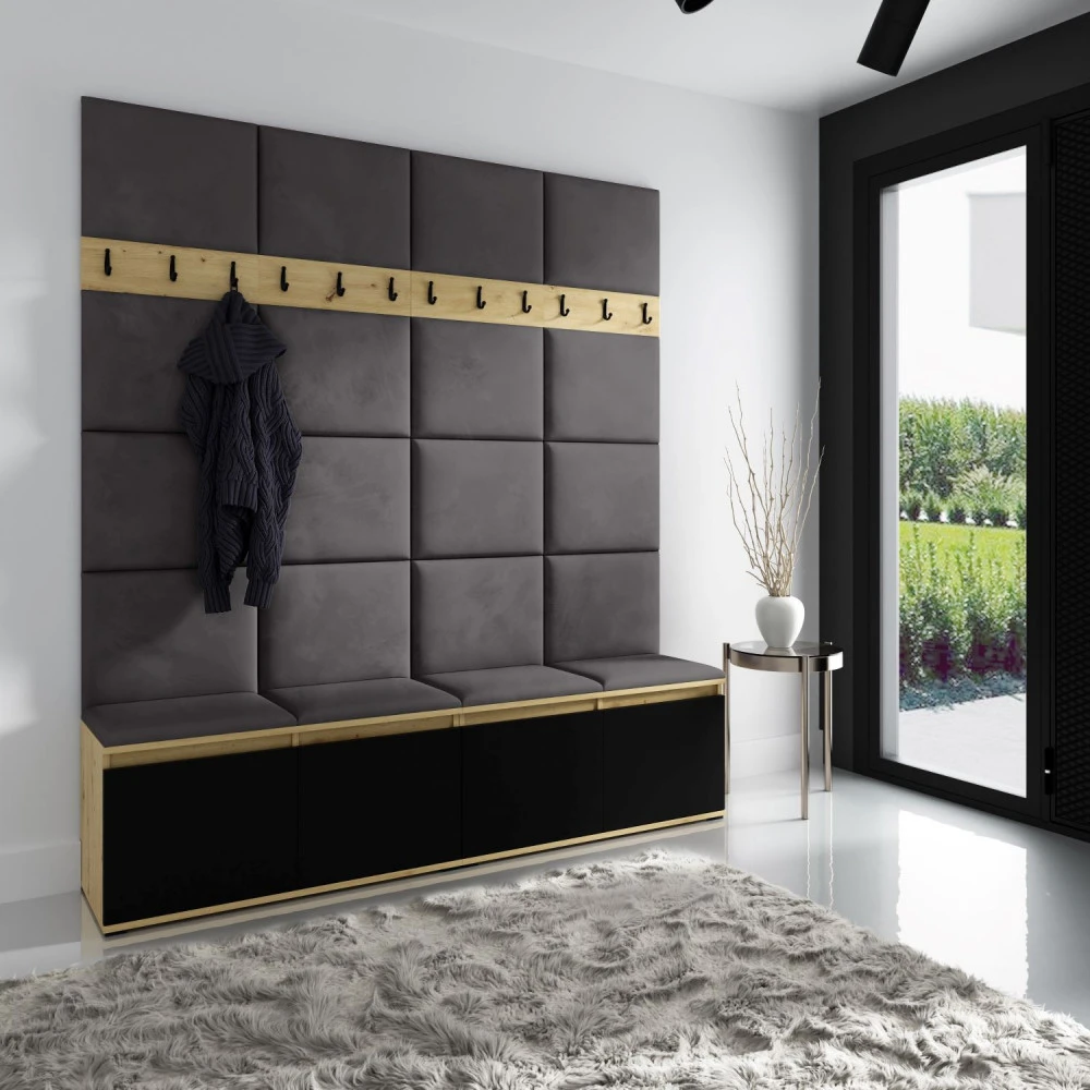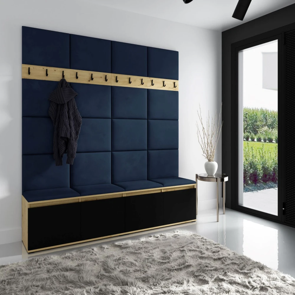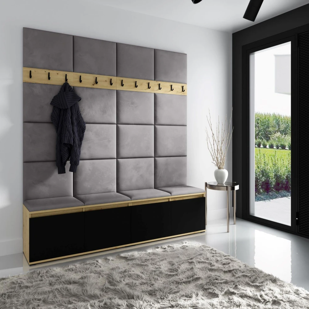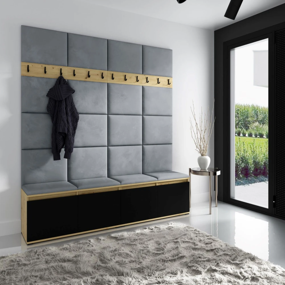 Čalouněná předsíň EMI 4 s barevnými panely je ideální volbou pro ty, kteří hledají originální a funkční řešení.Představujeme vám čalouněnou předsíň EMI, která kombinuje moderní design, praktické využití a jedinečnou estetiku. Čalouněné panely v různých barvách jsou nejen vizuálně atraktivní, ale také přinášejí pohodlí a funkčnost, díky kterým bude vaše předsíň působit útulně a stylově zároveň.Čalouněné panely EMI jsou vyrobeny z odolných materiálů, které zajišťují dlouhou životnost i snadnou údržbu. Povrchy odolné vůči nečistotám a vlhkosti jsou praktické zejména v předsíních, které jsou každodenně zatěžované.